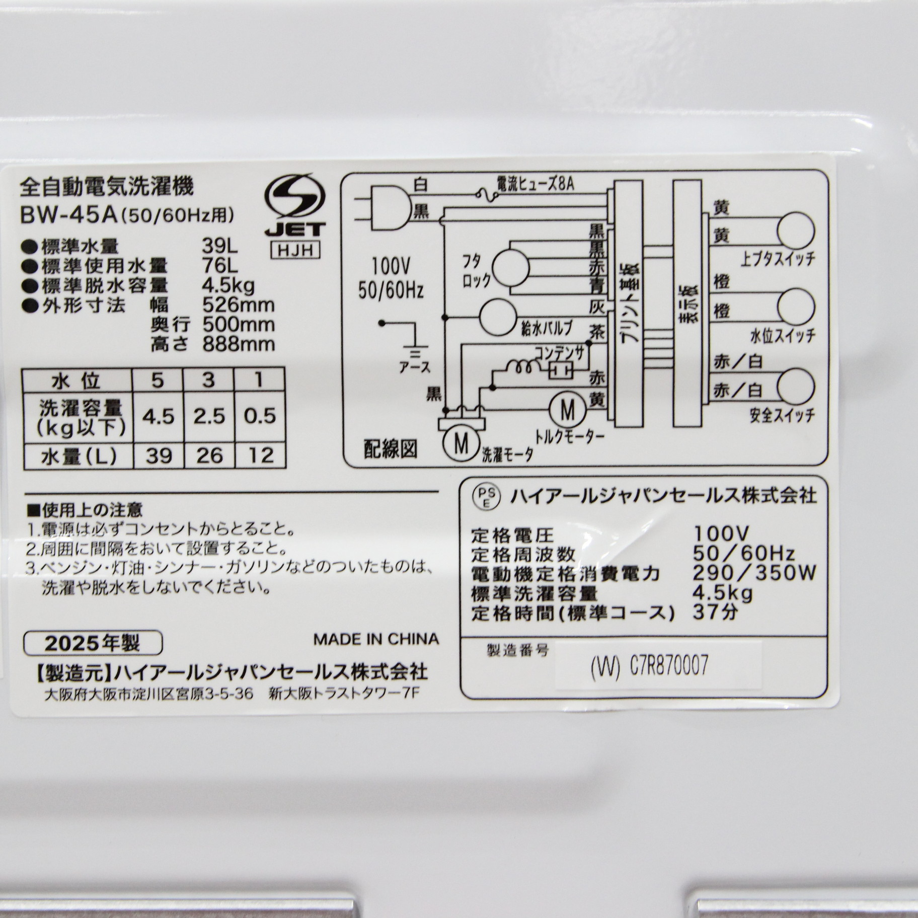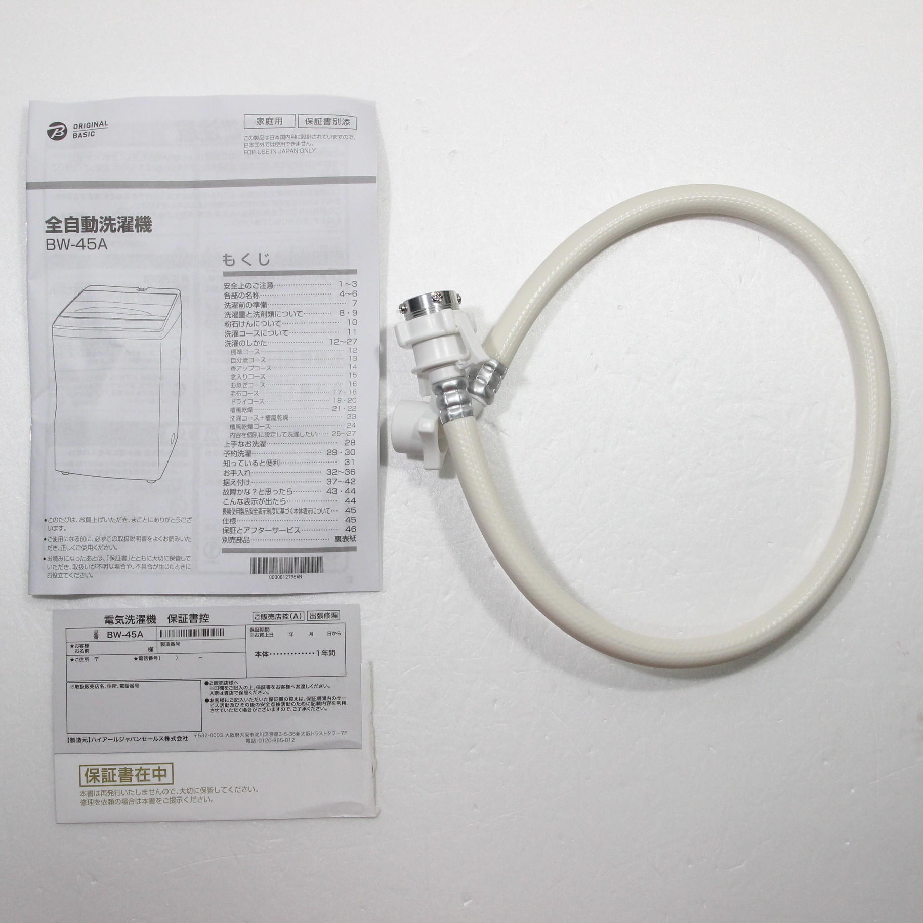 〔展示品〕 全自動洗濯機 ホワイト BW-45A-W [洗濯4.5kg /乾燥機能無 /上開き]