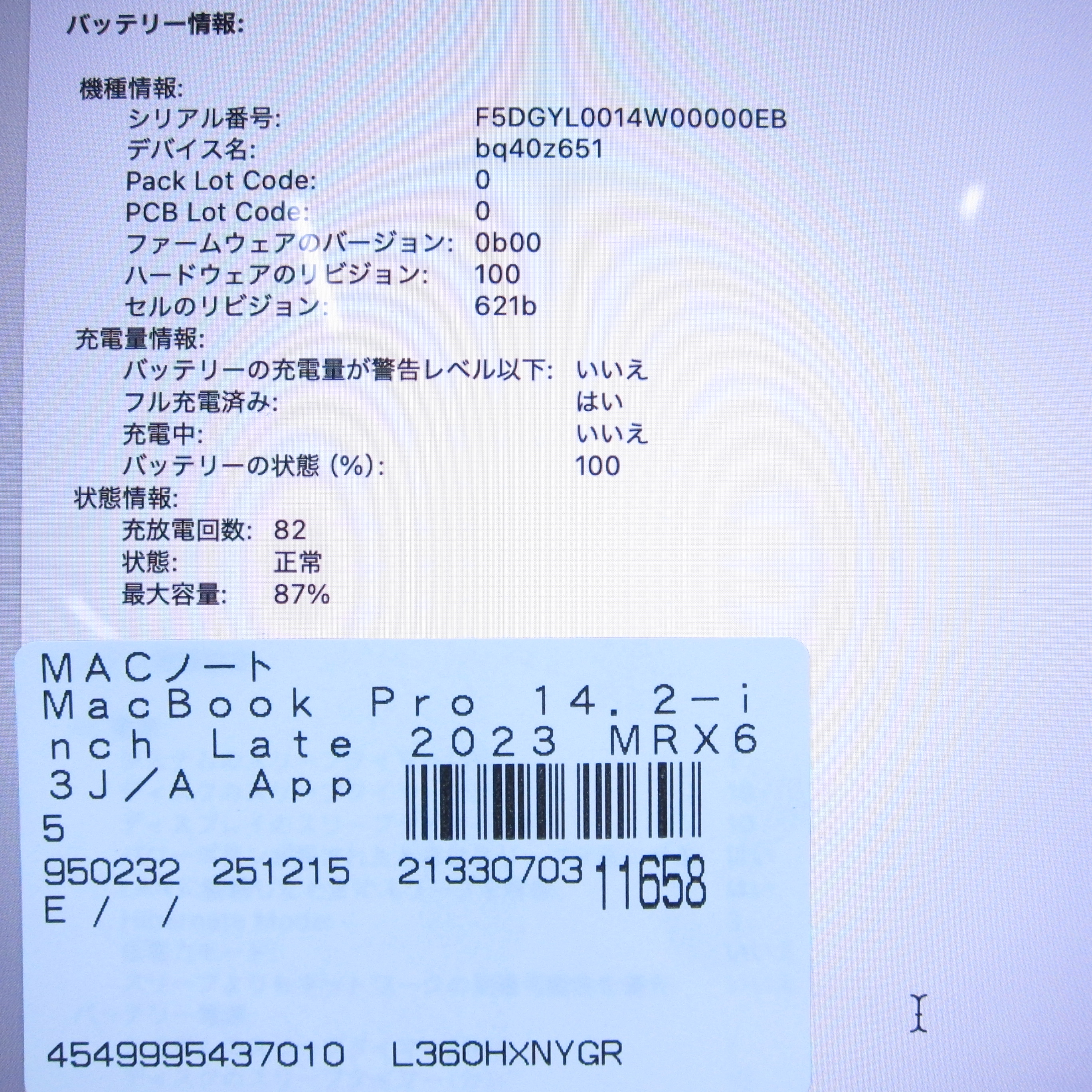 商品名 〔中古品〕 MacBook Pro 14.2-inch Late-2023 MRX63J/A Apple M3 Pro 11コアCPU_14コアGPU 18GB SSD512GB シルバー 〔15.3 Sequoia〕 [グラフィック:オンボード/JISキーボード]