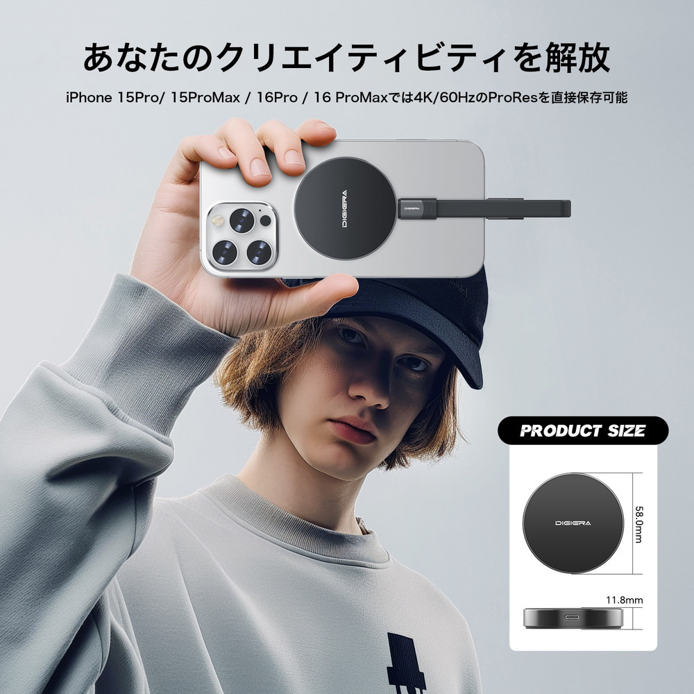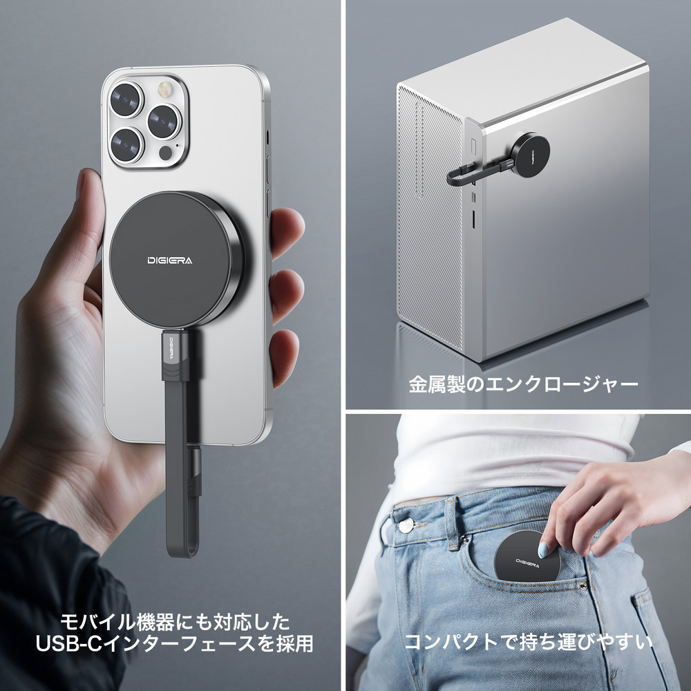 〔展示品〕 DIGIERA マグネティックポータブル SSD DGLPS2000M512BL ブラック 箱破損品