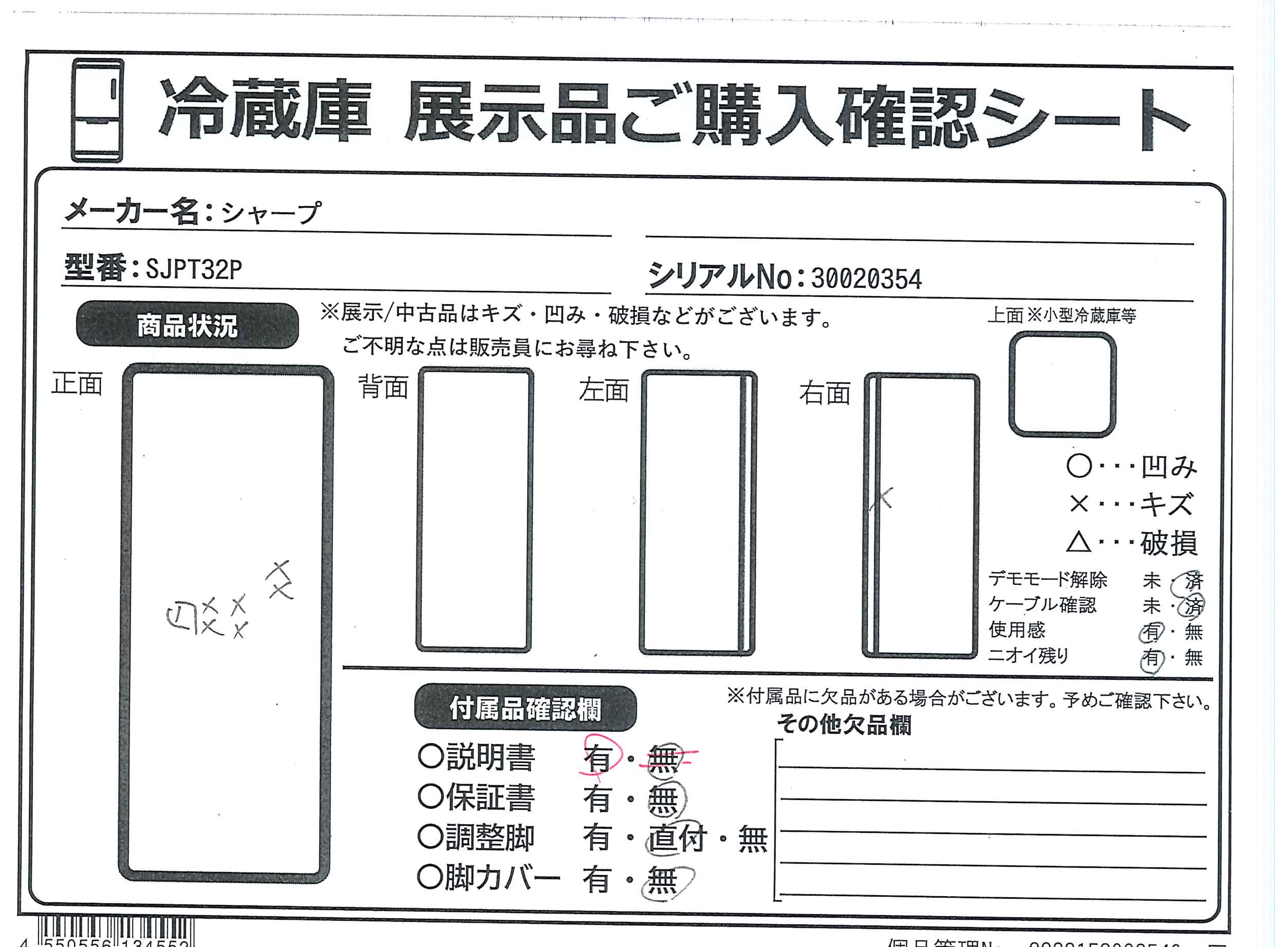 中古商品ランクについて 付属品・商品状態について 〔付属品〕説明書、調節脚、たまご仕切り、フリーケース、製氷皿、蒸発皿、小物ケース