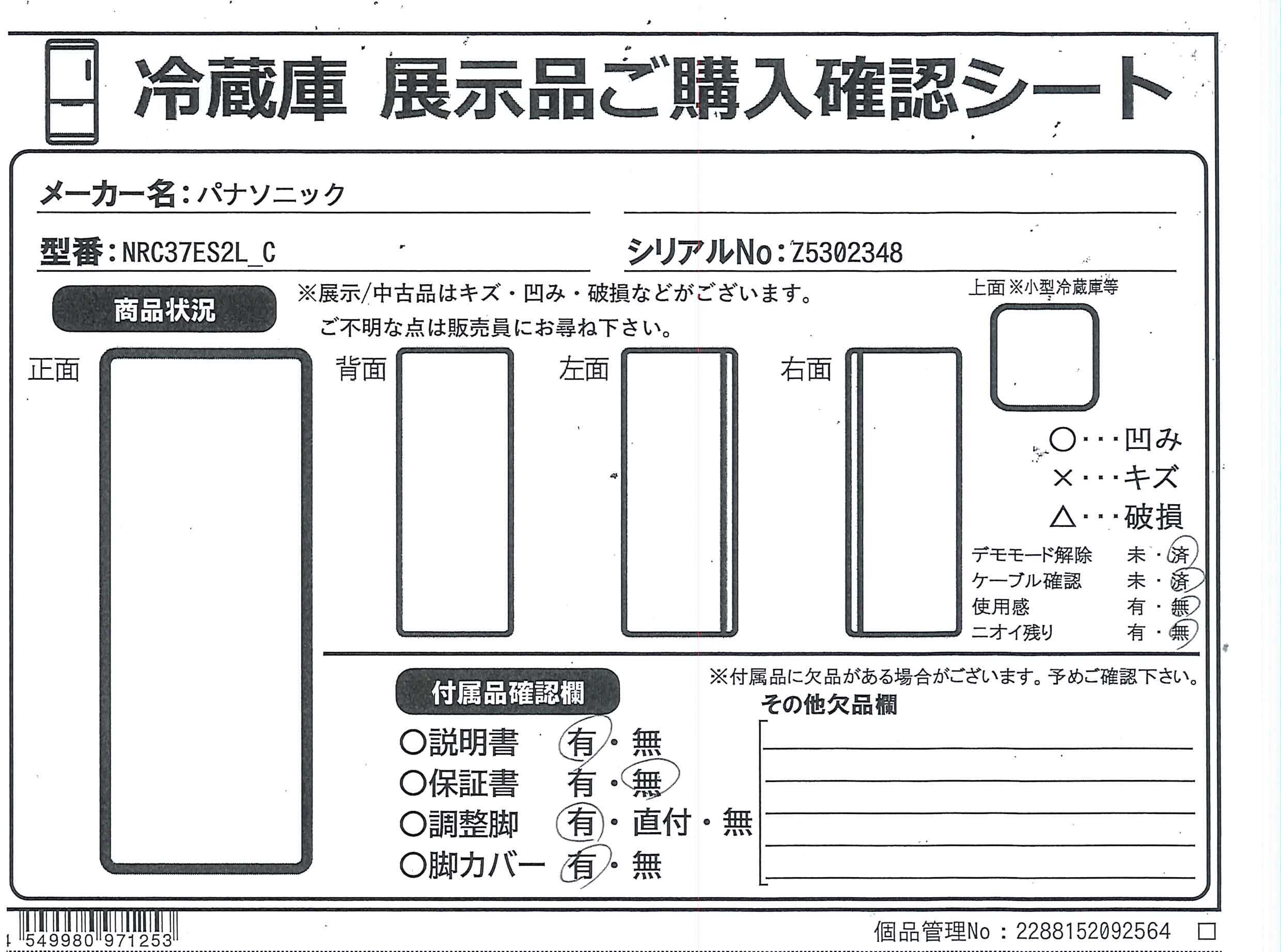 ▼同型番の新品商品はこちら![]() Panasonic(パナソニック) 冷蔵庫 ESタイプ マットベージュ NR-C37ES2L-C [60cm /365L /3ドア /左開きタイプ /2025年] 【基本設置料金セット】 ¥138,600(税込) 0ポイントサービス 在庫あり |