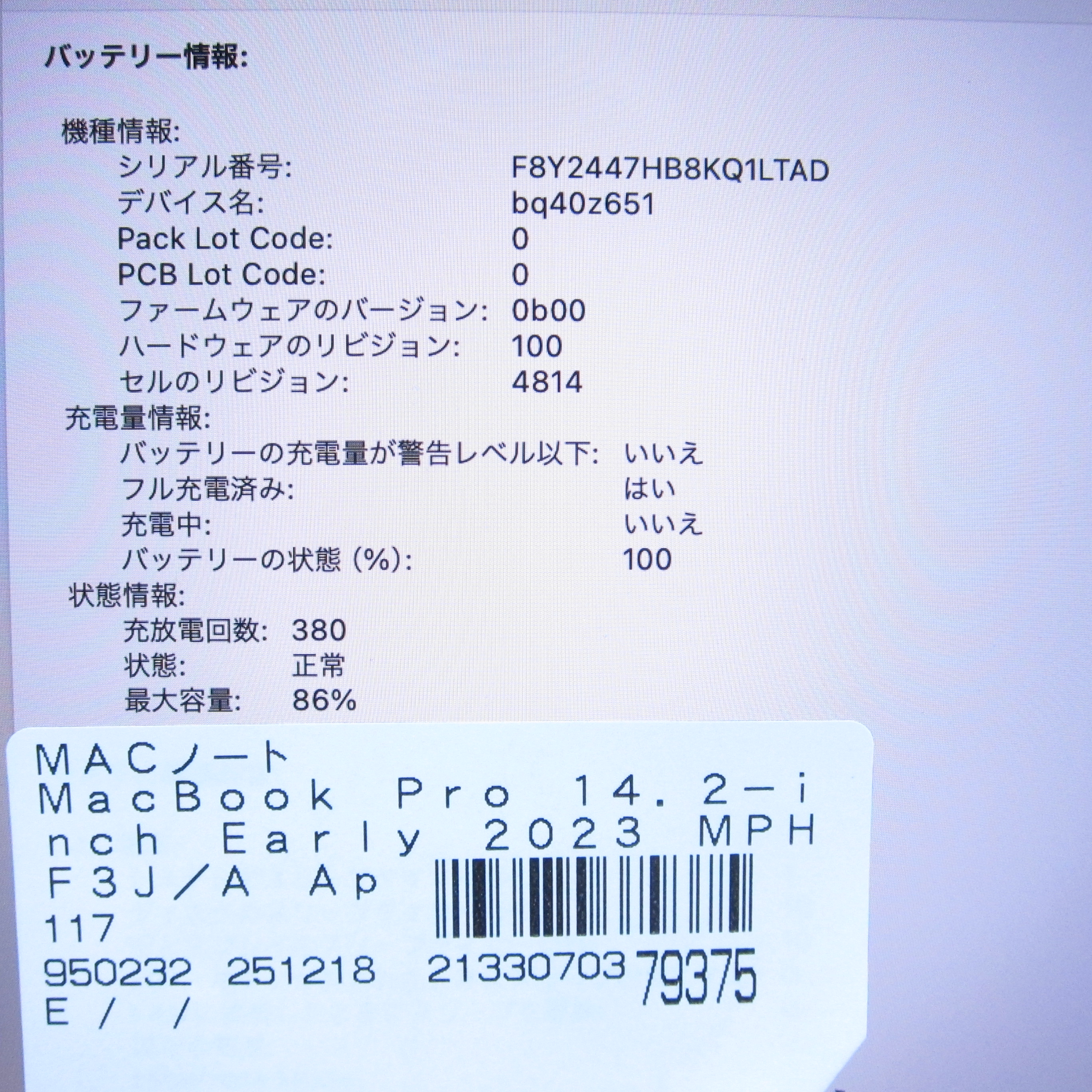 〔中古品〕 MacBook Pro 14.2-inch Early-2023 MPHF3J/A Apple M2 Pro 12コアCPU_19コアGPU 16GB SSD1TB スペースグレイ 〔14.7 Sonoma〕 [グラフィック:オンボード/JISキーボード]