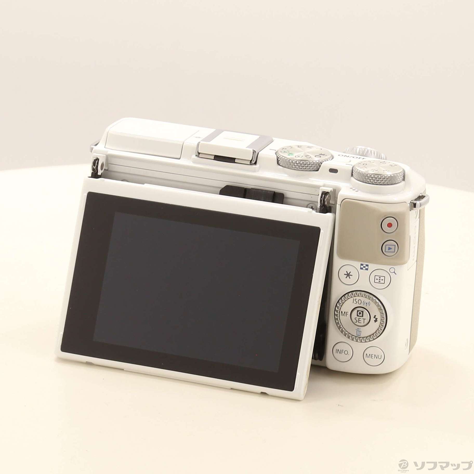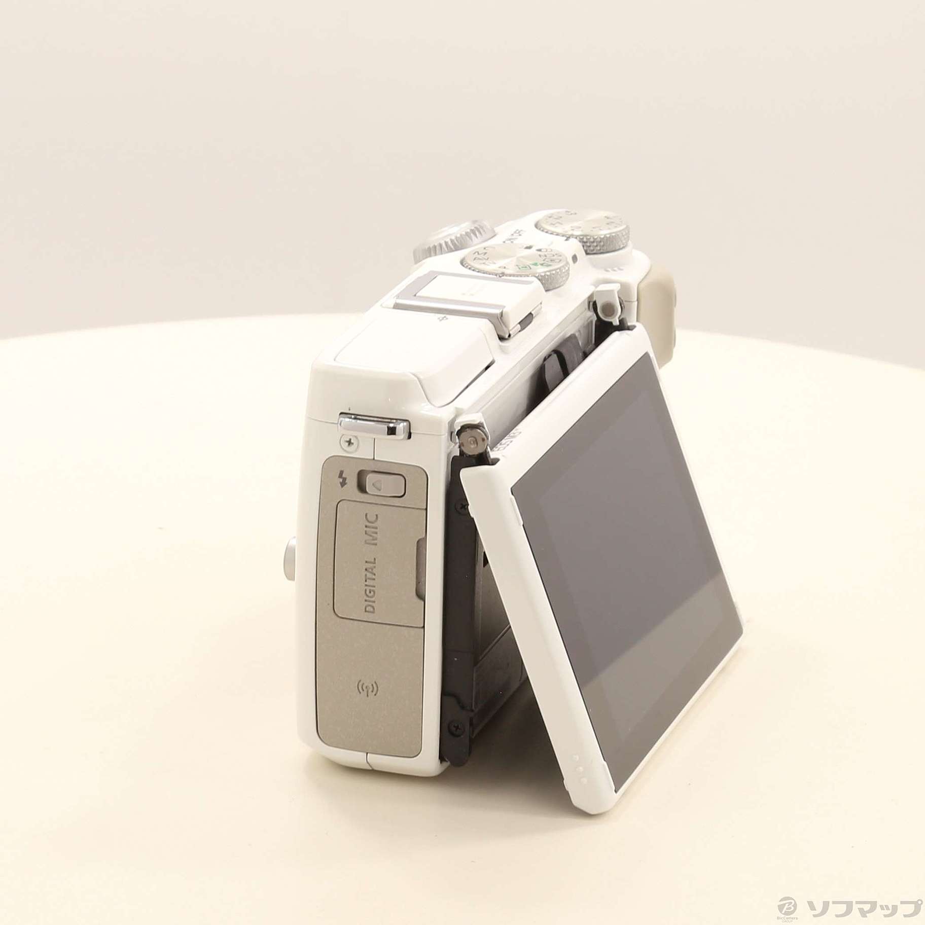 ・ローアングル撮影や自分撮りに便利な上方向に約180°、下方向に約45°可動する約104万ドットのチルト式液晶モニターを採用。