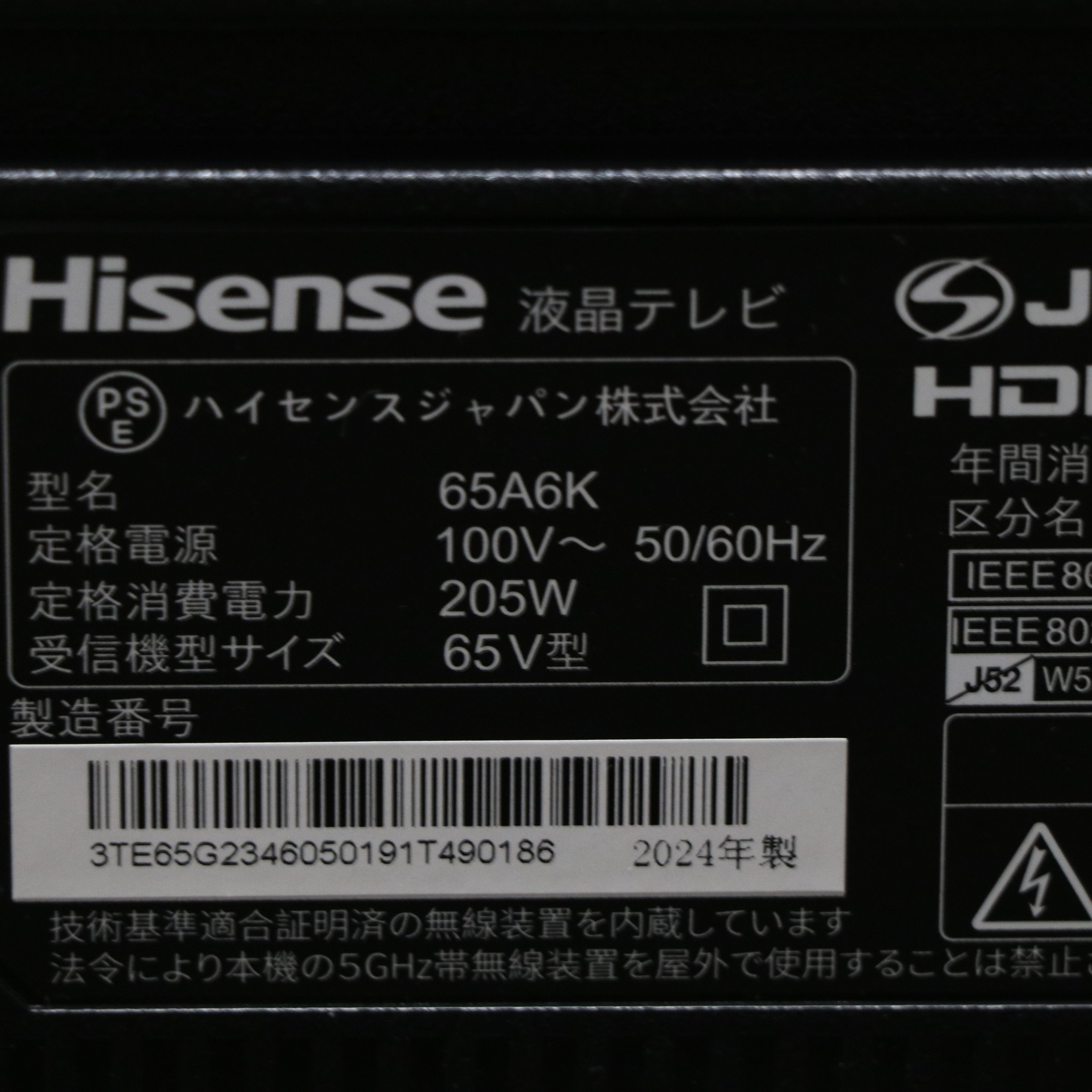 ![Hisense(ハイセンス) 液晶テレビ 65A6K [65V型 /Bluetooth対応 /4K対応 /BS・CS 4Kチューナー内蔵 /YouTube対応]](https://image.sofmap.com/images/product/large/4580341988121.jpg)