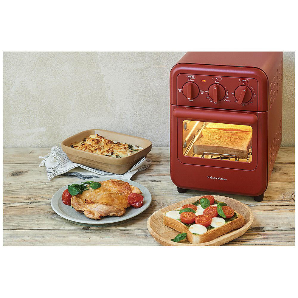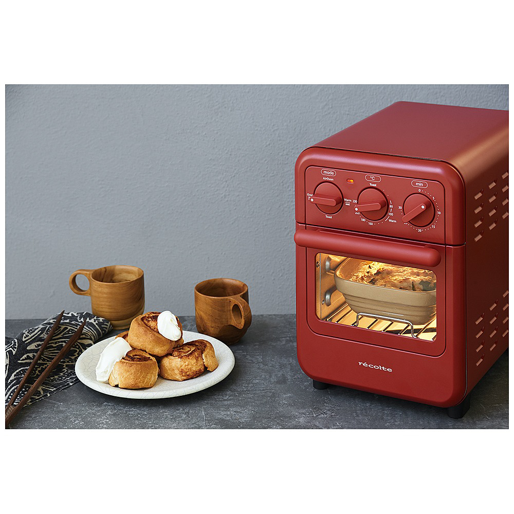 エアーオーブン・オーブン・トースト・ウォームの4モードを搭載し、日々のトーストからオーブン料理や熱風調理、保温まで、幅広い調理に大活躍。モード・温度調節・タイマーの3つのダイヤルで直感的に操作が可能です。レトロなデザインながら、トーストに特化したマイコンによる温度制御機能も搭載。取り外せるラックやトレイは丸洗い可能。背面の扉を開ける事ができる機構で、お手入れも簡単です。カフェのフードリストのようなレシピブックが付属。