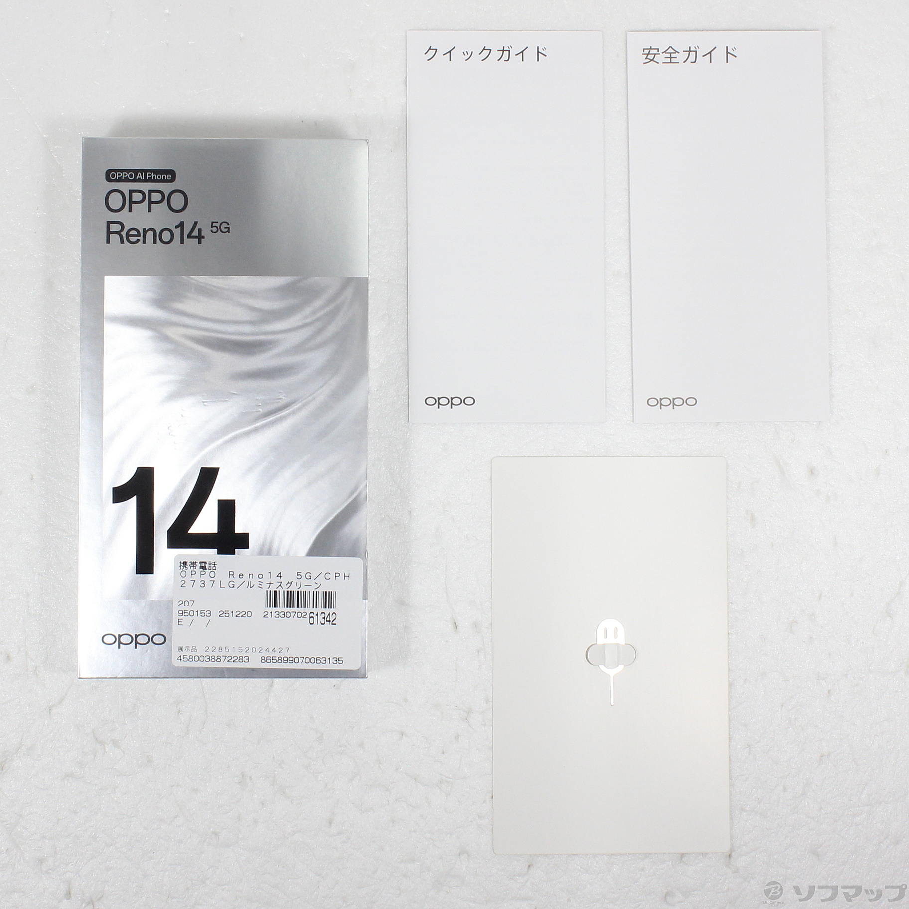 〔展示品〕 OPPO Reno14 5G 256GB ルミナスグリーン CPH2737 SIMフリー [6.6インチ有機EL/MediaTek Dimensity 8350]