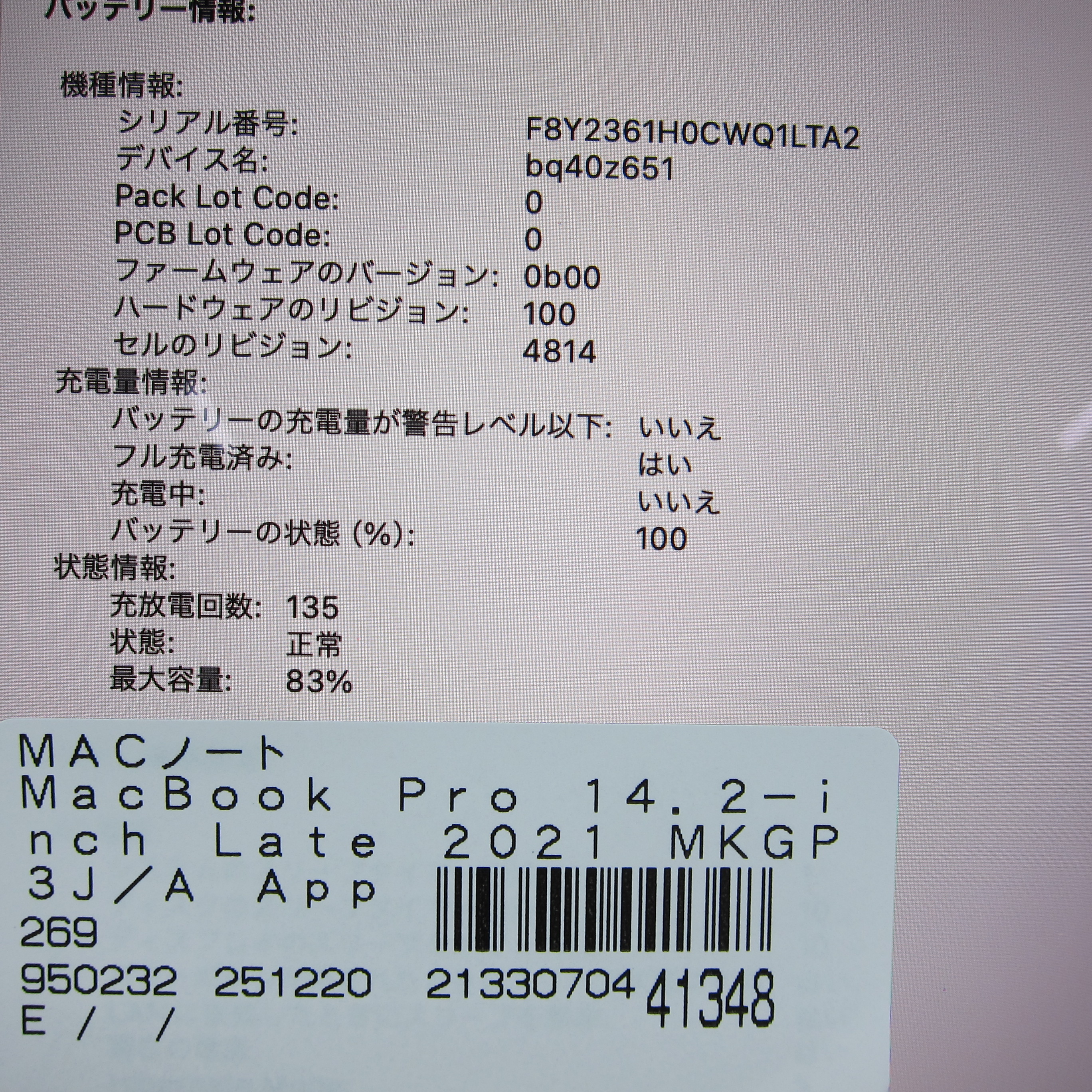 〔中古品〕 MacBook Pro 14.2-inch Late-2021 MKGP3J/A Apple M1 Pro 8コアCPU_14コアGPU 32GB SSD512GB スペースグレイ 〔14.7 Sonoma〕 [グラフィック:オンボード/JISキーボード]