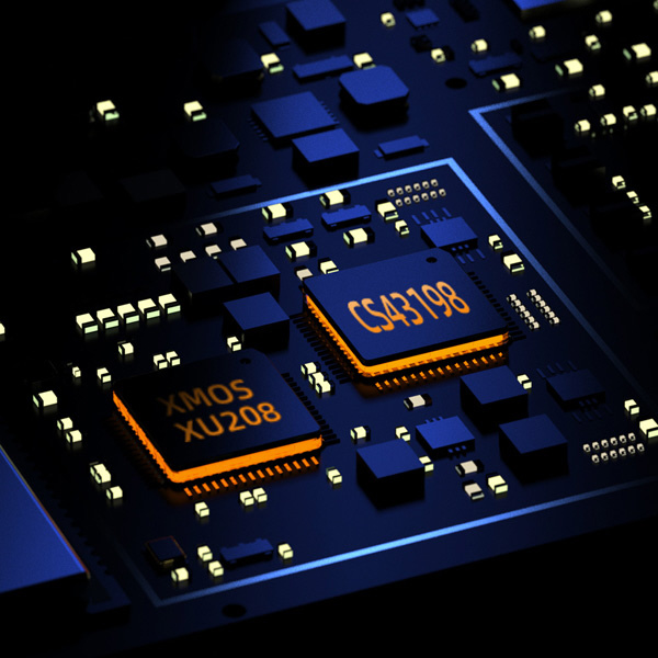 XMOS社XU208 USBチップを搭載し、高い演算処理性能、低消費電力、低レイテンシーを叶えた、USBアシンクロナスオーディオデコーディングを実現。