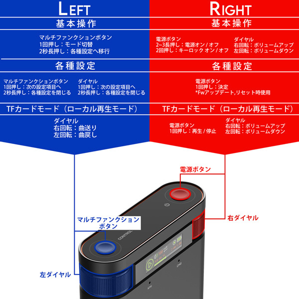 底面のMicroSDカードスロットによる、ローカル再生機能を搭載し、単体での音楽再生を可能にしています。