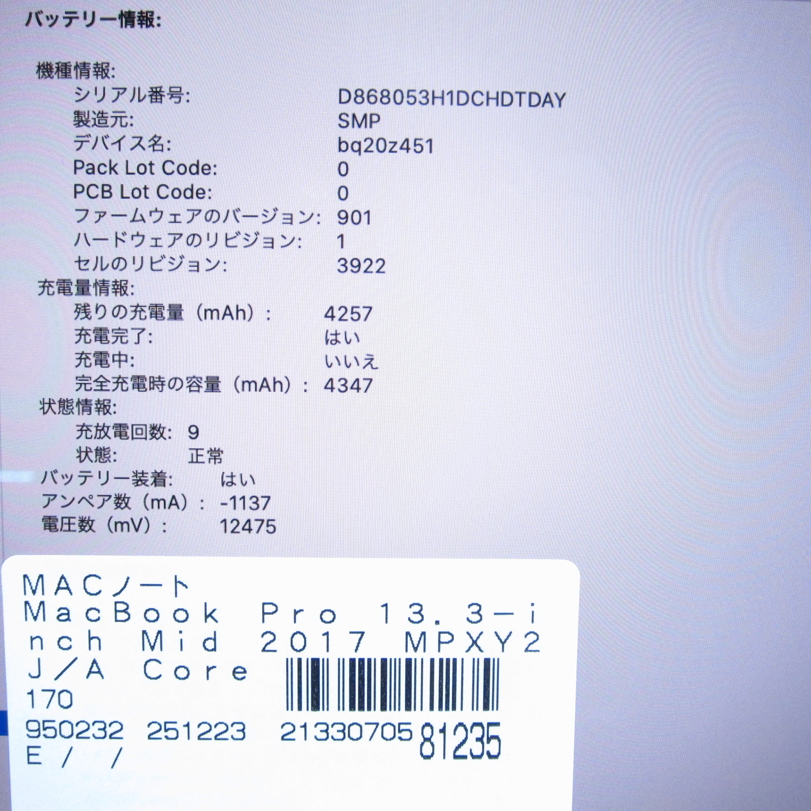 〔中古品〕 MacBook Pro 13.3-inch Mid-2017 MPXY2J/A Core_i7 3.5GHz 16GB SSD512GB シルバー 〔10.15 Catalina〕 [グラフィック:Intel Iris Plus Graphics 650(CPU内蔵)/JISキーボード]
