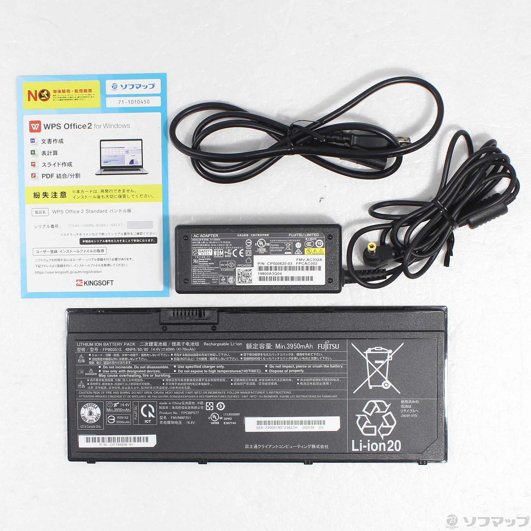 〔付属品〕ACアダプター(本体用)、電源コード、バッテリー、WPS Office2