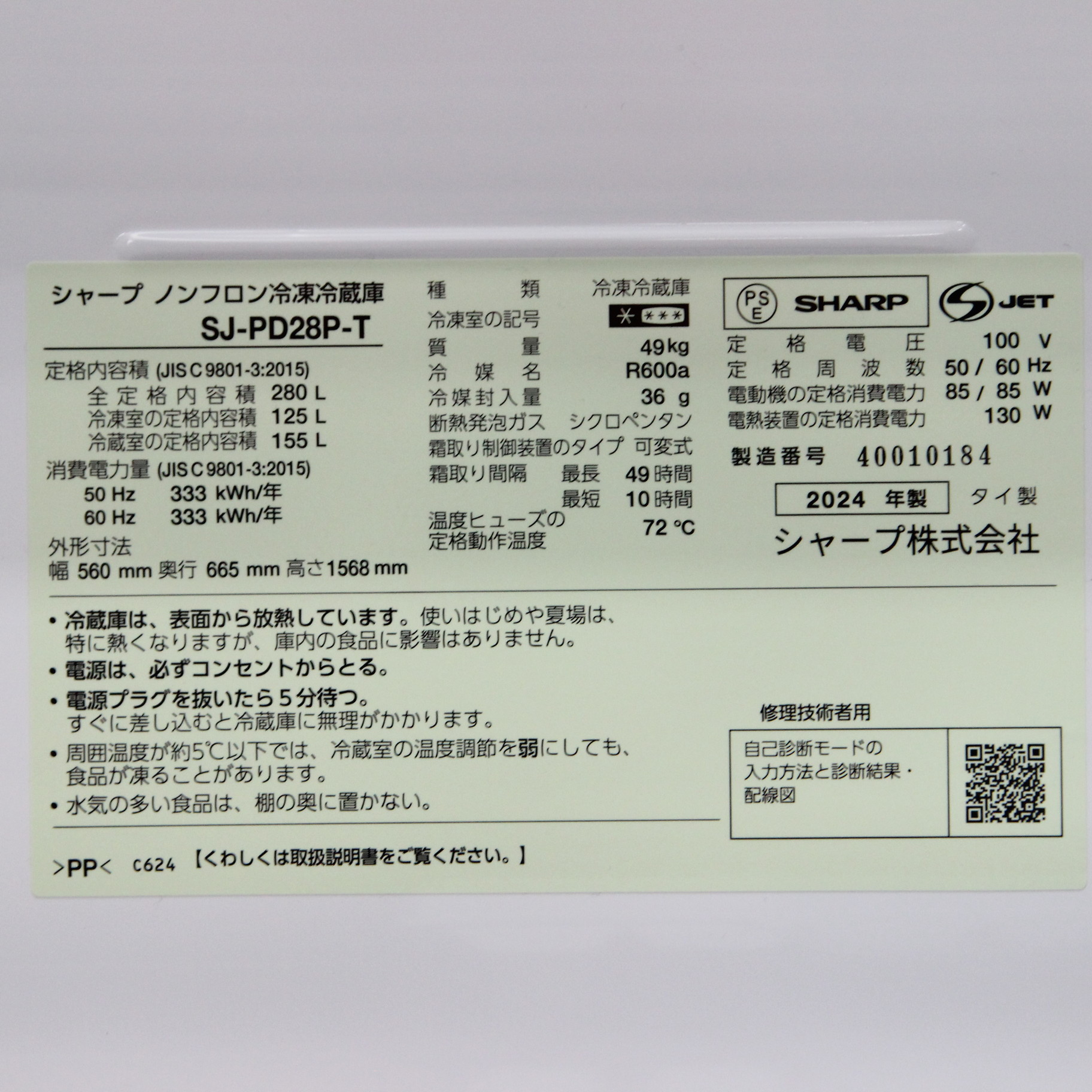 〔展示品〕 冷蔵庫 アコールブラウン SJ-PD28P-T [幅56cm /280L /2ドア /右開きタイプ /2024年]