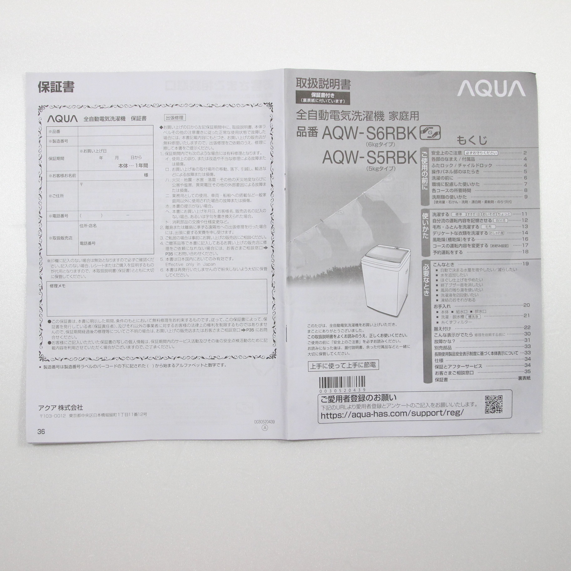〔展示品〕 全自動洗濯機 ホワイト AQW-S5RBK(W) [洗濯5.0kg /簡易乾燥(送風機能) /上開き]