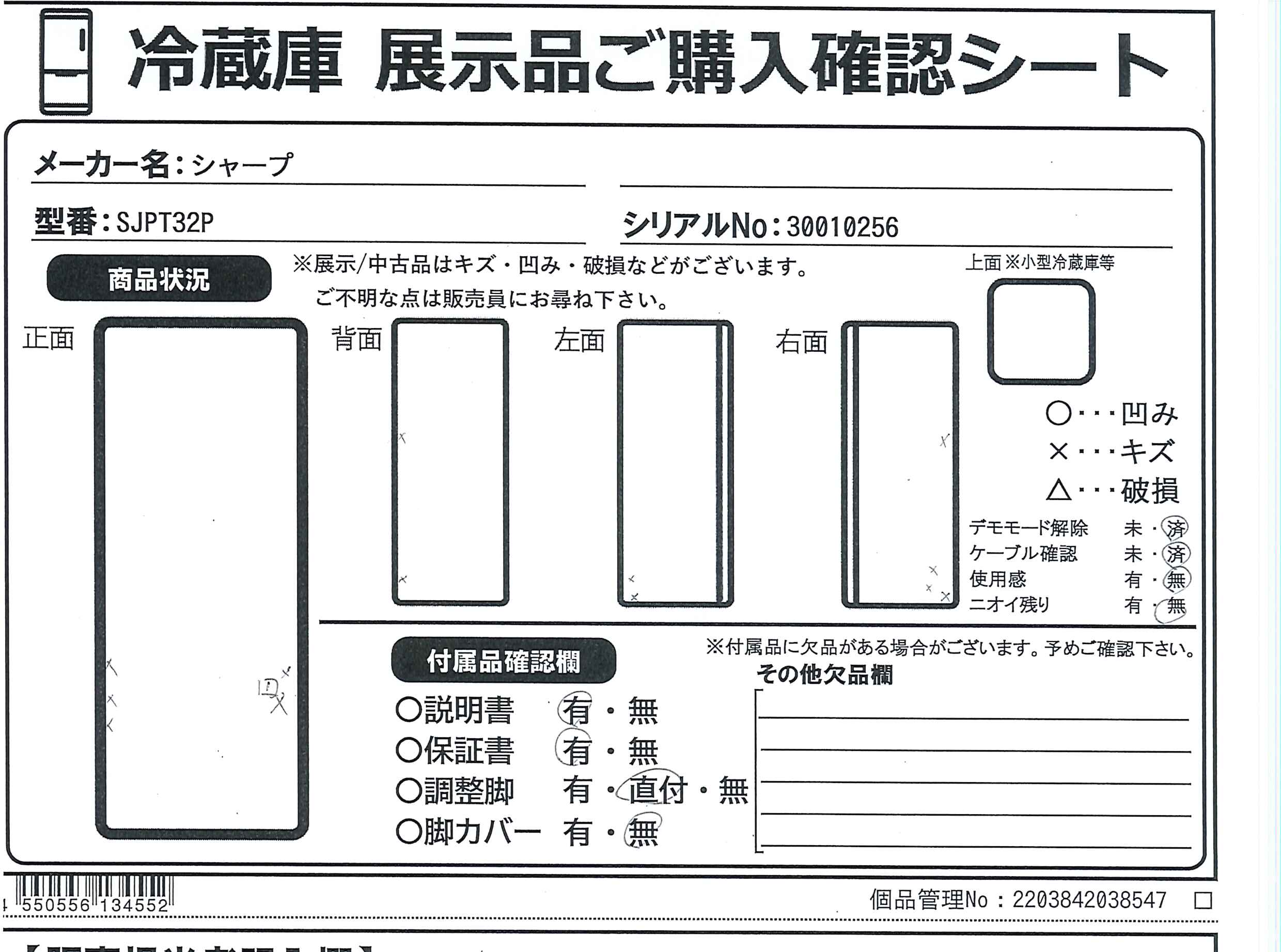 中古商品ランクについて 付属品・商品状態について 〔付属品〕説明書、調節脚×2、たまご仕切り、フリーケース、製氷皿、蒸発皿、小物ケース
