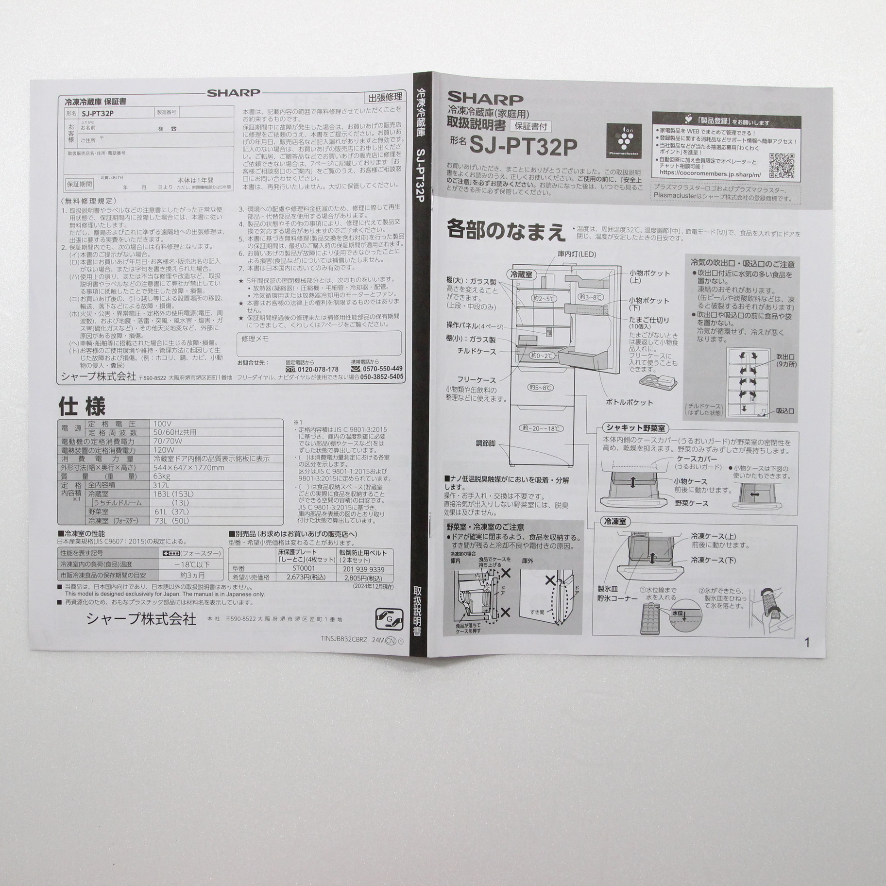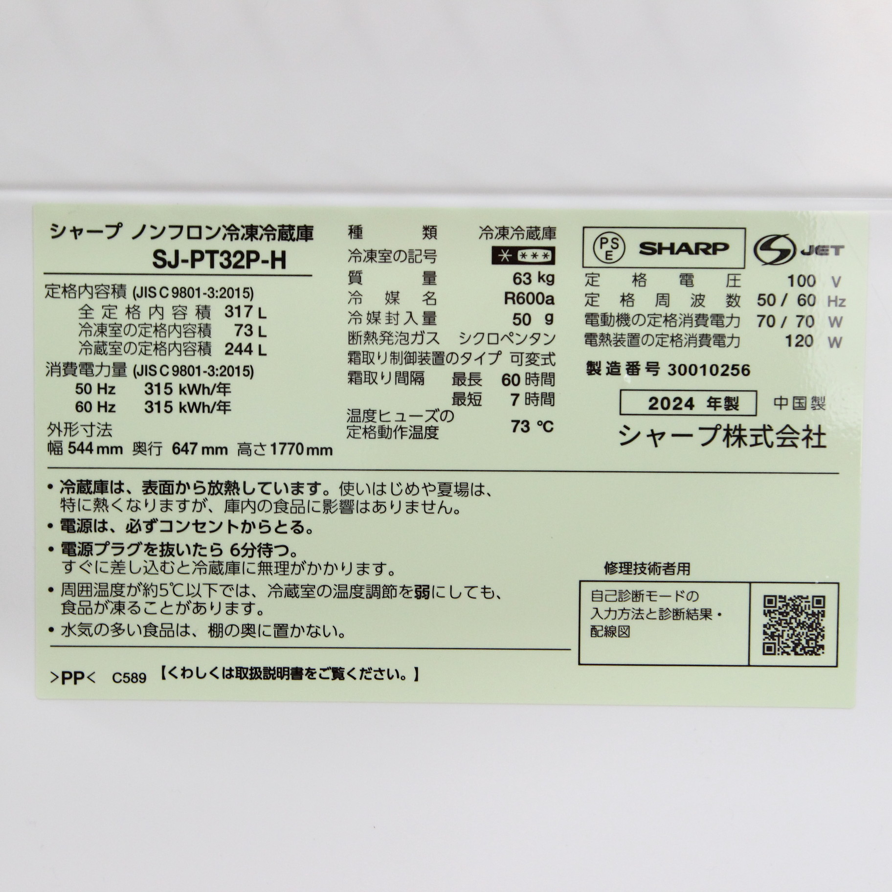 〔展示品〕 冷蔵庫 マットグレー SJ-PT32P-H [幅54.4cm /317L /3ドア /右開きタイプ /2024年]