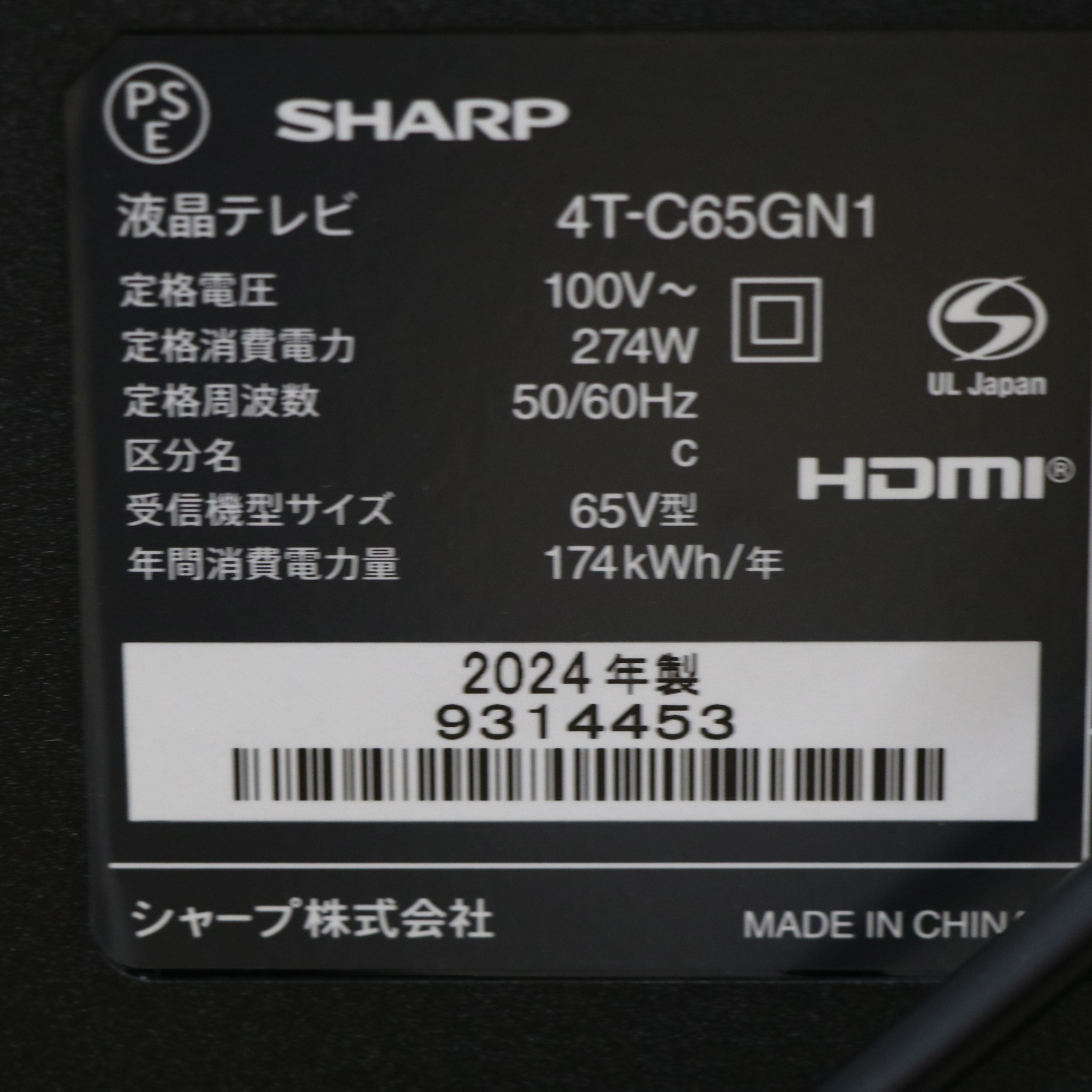 ![SHARP(シャープ) 液晶テレビ AQUOS ブラック 4T-C65GN1 [65V型 /Bluetooth対応 /4K対応 /BS・CS 4Kチューナー内蔵 /YouTube対応]](https://image.sofmap.com/images/product/large/4550556119474.jpg)