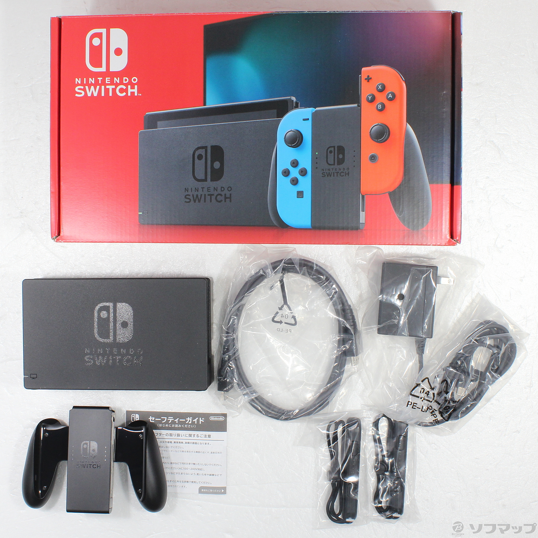 中古商品ランクについて 付属品・商品状態について 〔付属品〕箱、セーフティーガイド、ACアダプター、Joy-Conグリップ、Joy-Con 左 ネオンブルー、Nintendo Switchドック、Joy-Conストラップ 左、Joy-Conストラップ 右、背面スタンド、HDMIケーブル(1.5m)