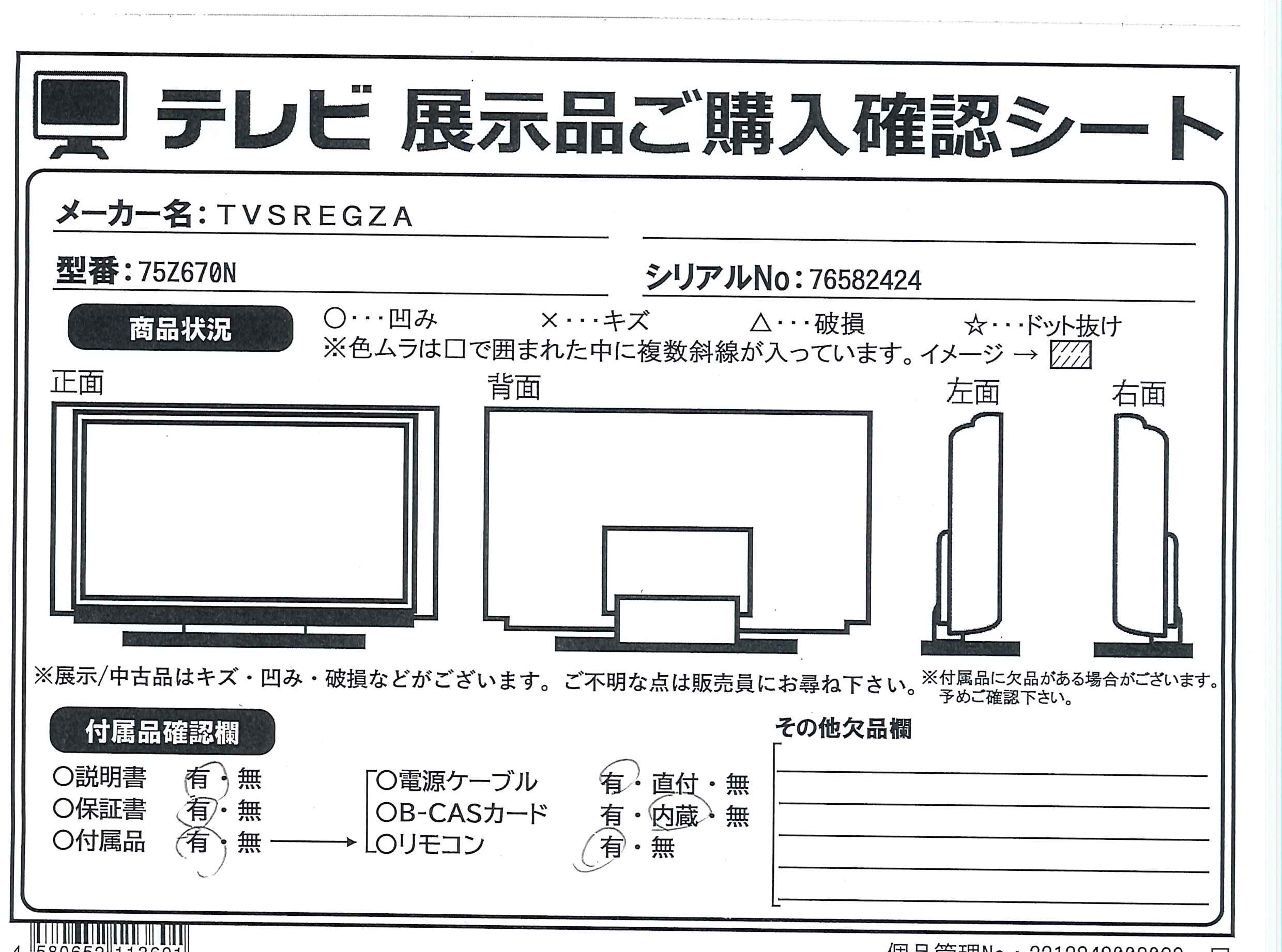 ▼同型番の新品商品はこちら![]() REGZA(レグザ) 液晶テレビ REGZA(レグザ) 75Z670N [75V型 /Bluetooth対応 /4K対応 /BS・CS 4Kチューナー内蔵 /YouTube対応] ¥308,000(税込) 30,800ポイントサービス 在庫限り |