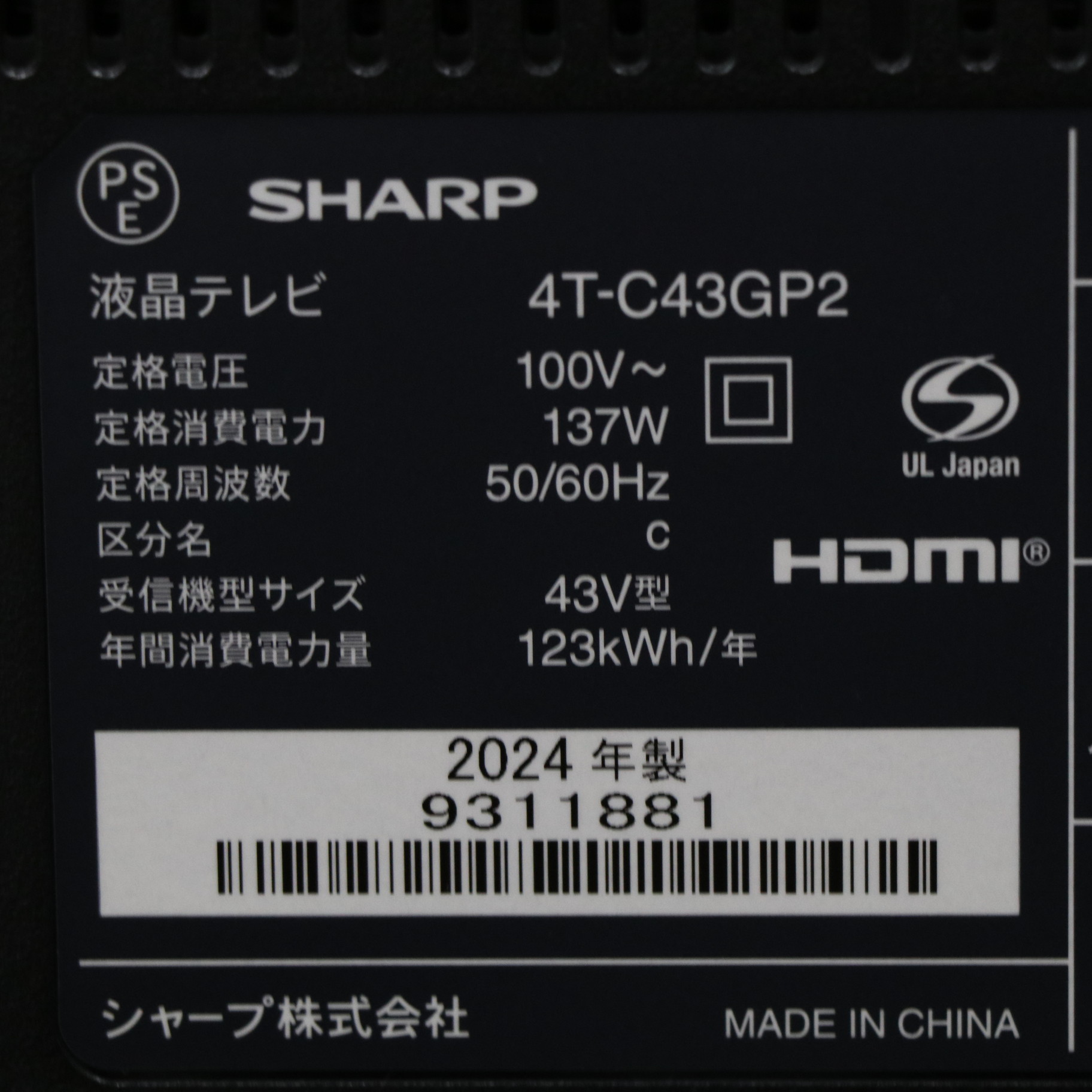 〔展示品〕 液晶テレビ AQUOS ブラック 4T-C43GP2 [43V型 /Bluetooth対応 /4K対応 /BS・CS 4Kチューナー内蔵 /YouTube対応]