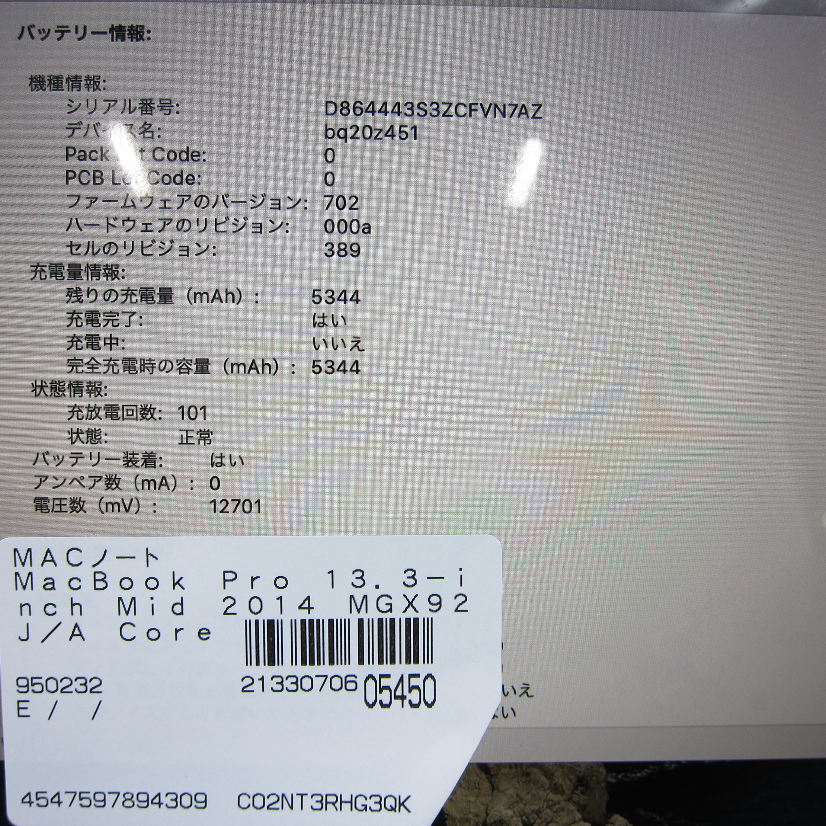 〔中古品(難あり)〕 MacBook Pro 13.3-inch Mid-2014 MGX92J/A Core_i5 2.8GHz 8GB SSD512GB 〔10.15 Catalina〕 [グラフィック:Intel Iris Graphics 5100/JISキーボード]
