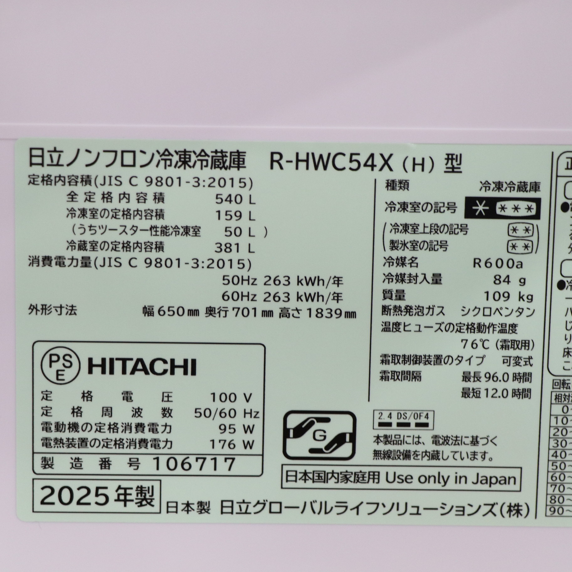 〔中古品〕 冷蔵庫 HWCタイプ ブラストモーブグレー R-HWC54X_H [幅65cm /540L /6ドア /観音開きタイプ /2025年]