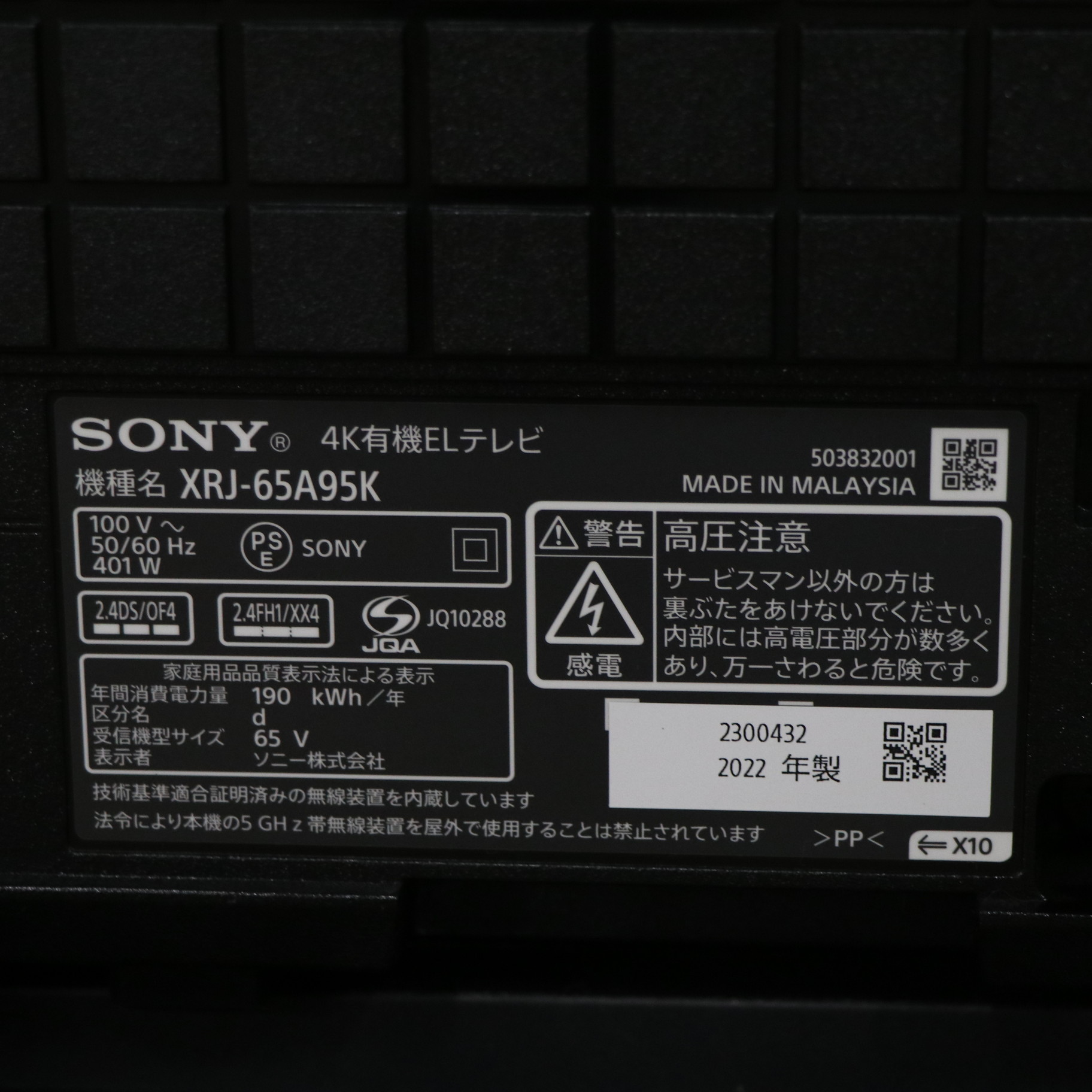 〔展示品〕 有機ELテレビ BRAVIA(ブラビア) XRJ-65A95K [65V型 /Bluetooth対応 /4K対応 /BS・CS 4Kチューナー内蔵 /YouTube対応]