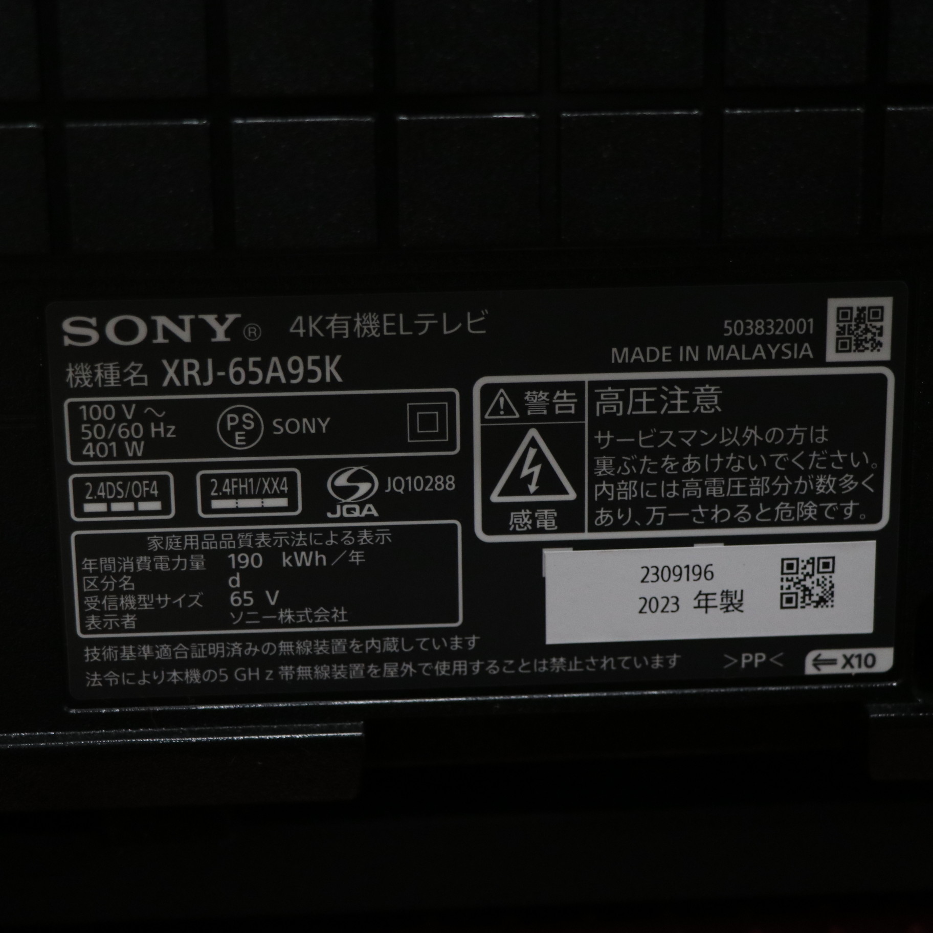 〔展示品〕 有機ELテレビ BRAVIA(ブラビア) XRJ-65A95K [65V型 /Bluetooth対応 /4K対応 /BS・CS 4Kチューナー内蔵 /YouTube対応]