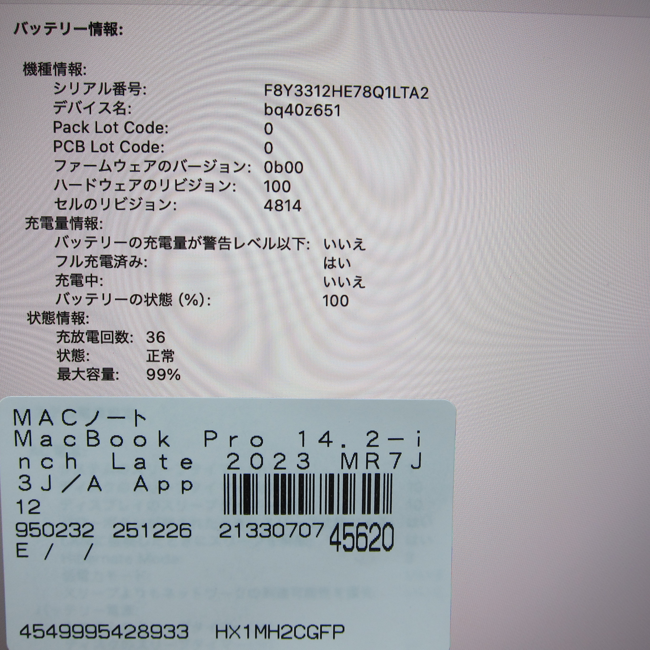 このMacBook Proは、MagSafe充電ポート、2つのThunderbolt / USB 4ポート、SDXCカードスロット、HDMIポート、ヘッドフォンジャックを搭載しています。Wi-Fi 6E※4とBluetooth 5.3による高速ワイヤレス接続に対応。外部ディスプレイを1台接続することもできます。