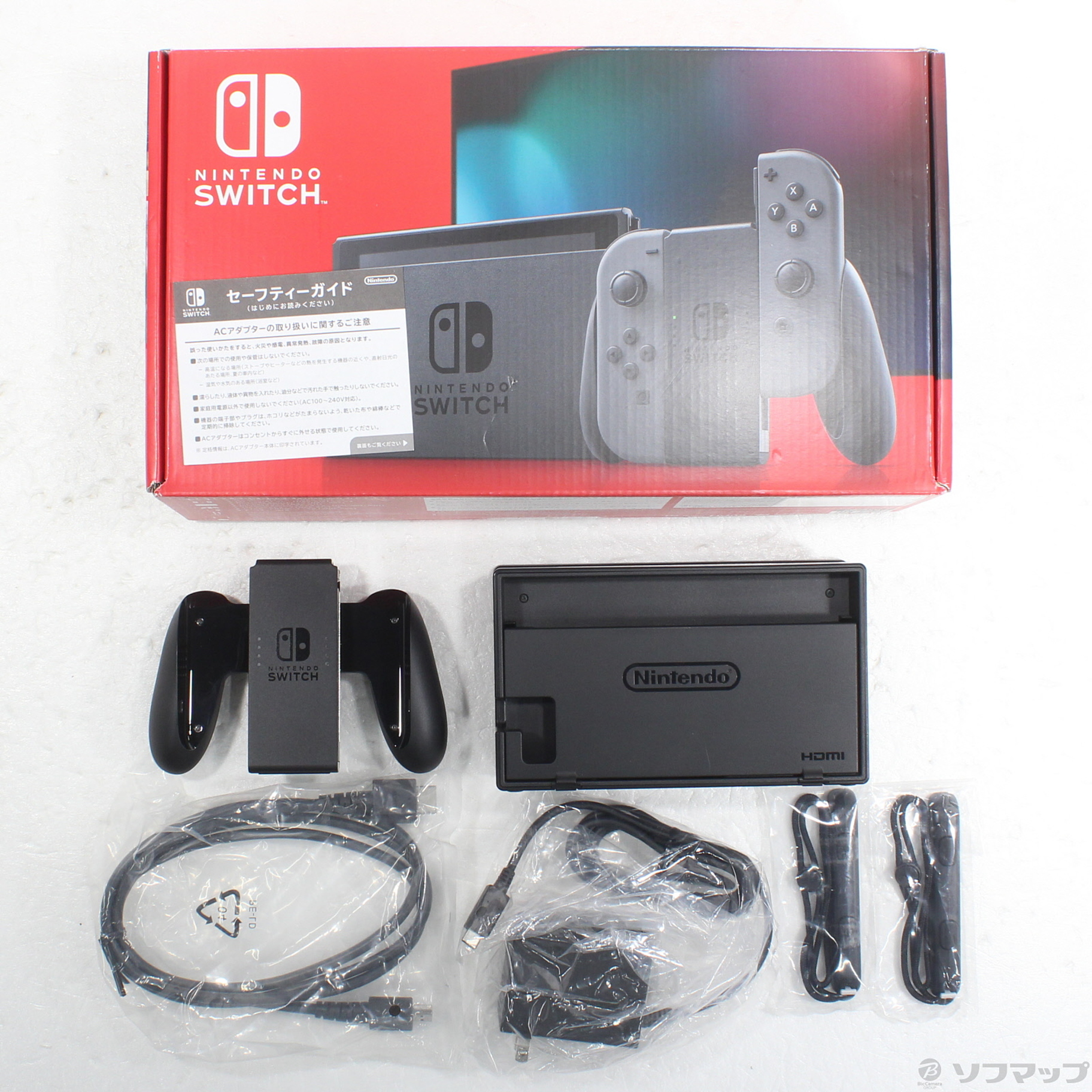 中古商品ランクについて 付属品・商品状態について 〔付属品〕箱、セーフティーガイド、ACアダプター、Joy-Con 右 グレー、Joy-Conグリップ、Nintendo Switchドック、Joy-Conストラップ 左、Joy-Conストラップ 右、背面スタンド、HDMIケーブル(1.5m)