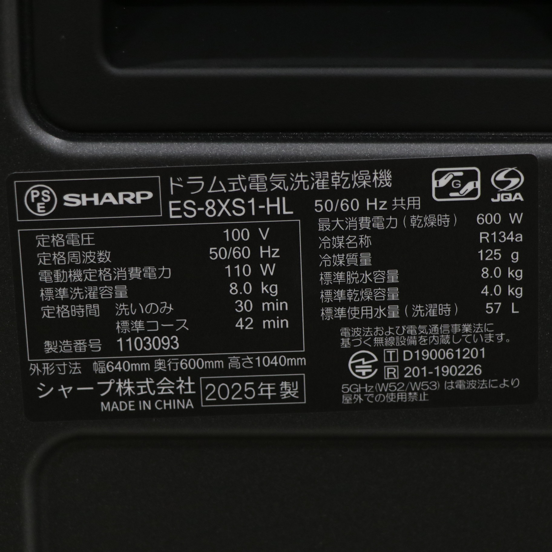 〔展示品〕 ドラム式洗濯乾燥機 グレイングレー ES-8XS1-HL [洗濯8.0kg /乾燥4.0kg /ヒートポンプ乾燥 /左開き]