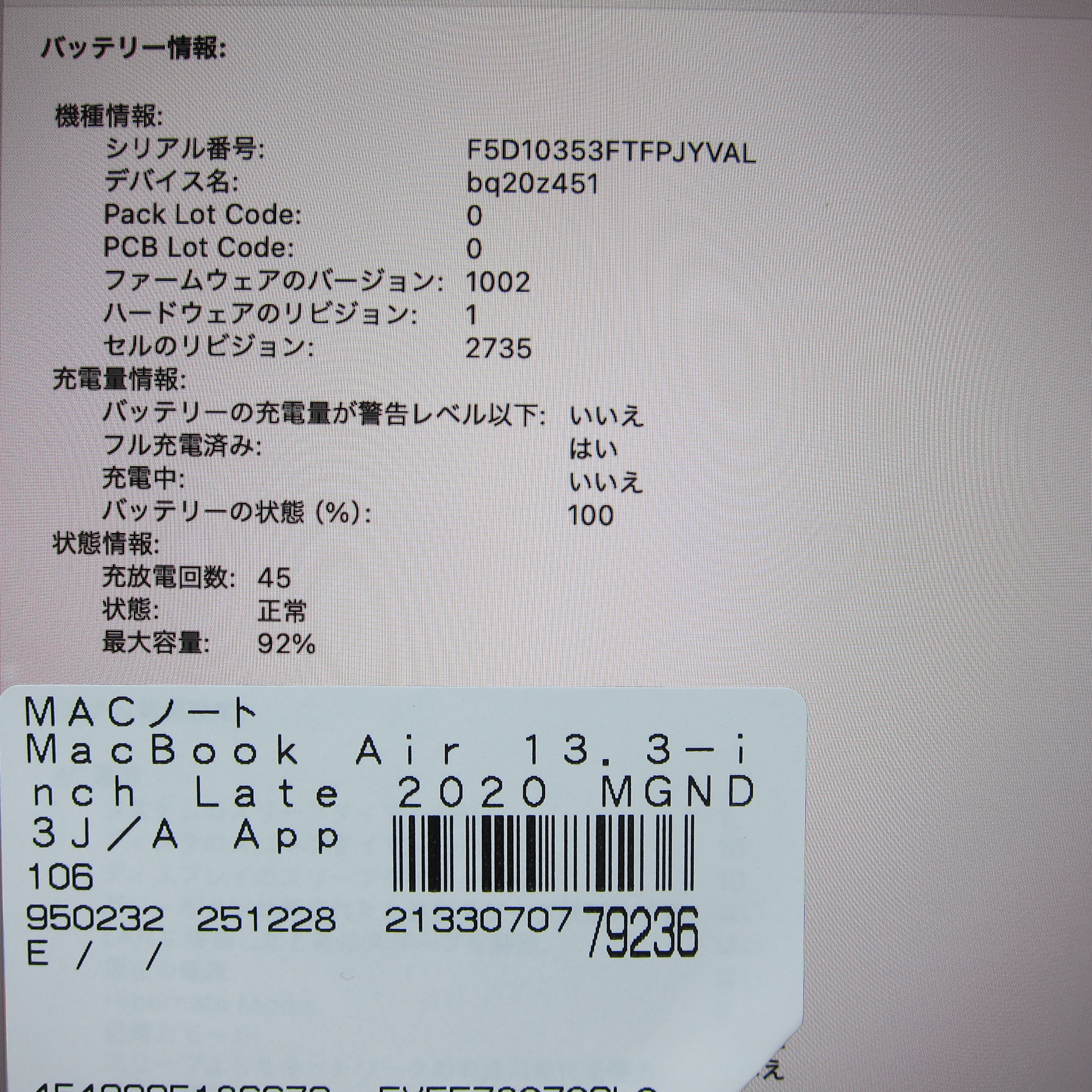 〔中古品〕 MacBook Air 13.3-inch Late-2020 MGND3J/A Apple M1 8コアCPU_7コアGPU 8GB SSD256GB ゴールド 〔15.3 Sequoia〕 [グラフィック:オンボード/JISキーボード]