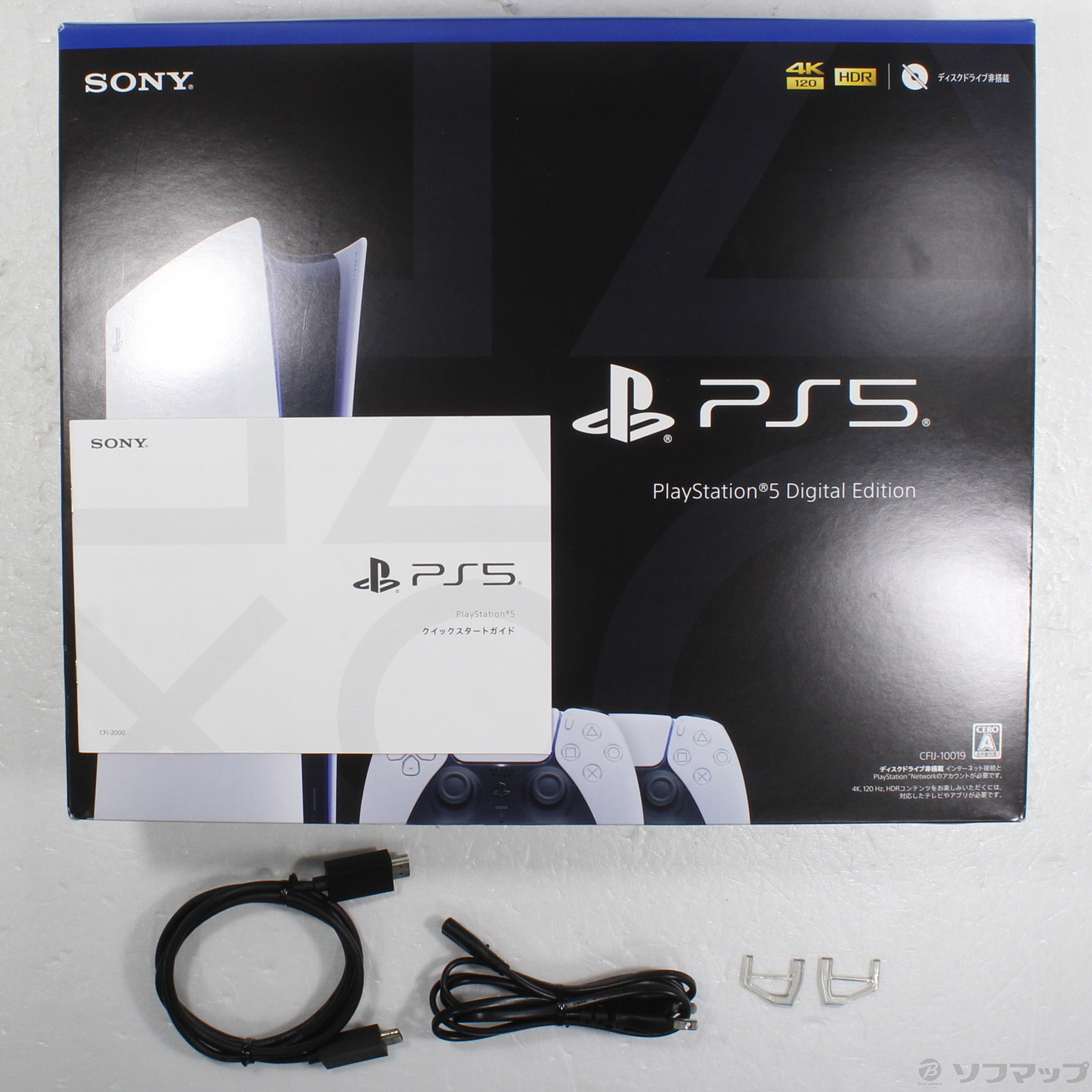 中古商品ランクについて 付属品・商品状態について 〔付属品〕外箱/内箱、クイックスタートガイド、DualSense ワイヤレスコントローラー(1/2)、DualSense ワイヤレスコントローラー(2/2)、横置き用フット×2、本体底面ネジ穴キャップ、HDMIケーブル、電源コード