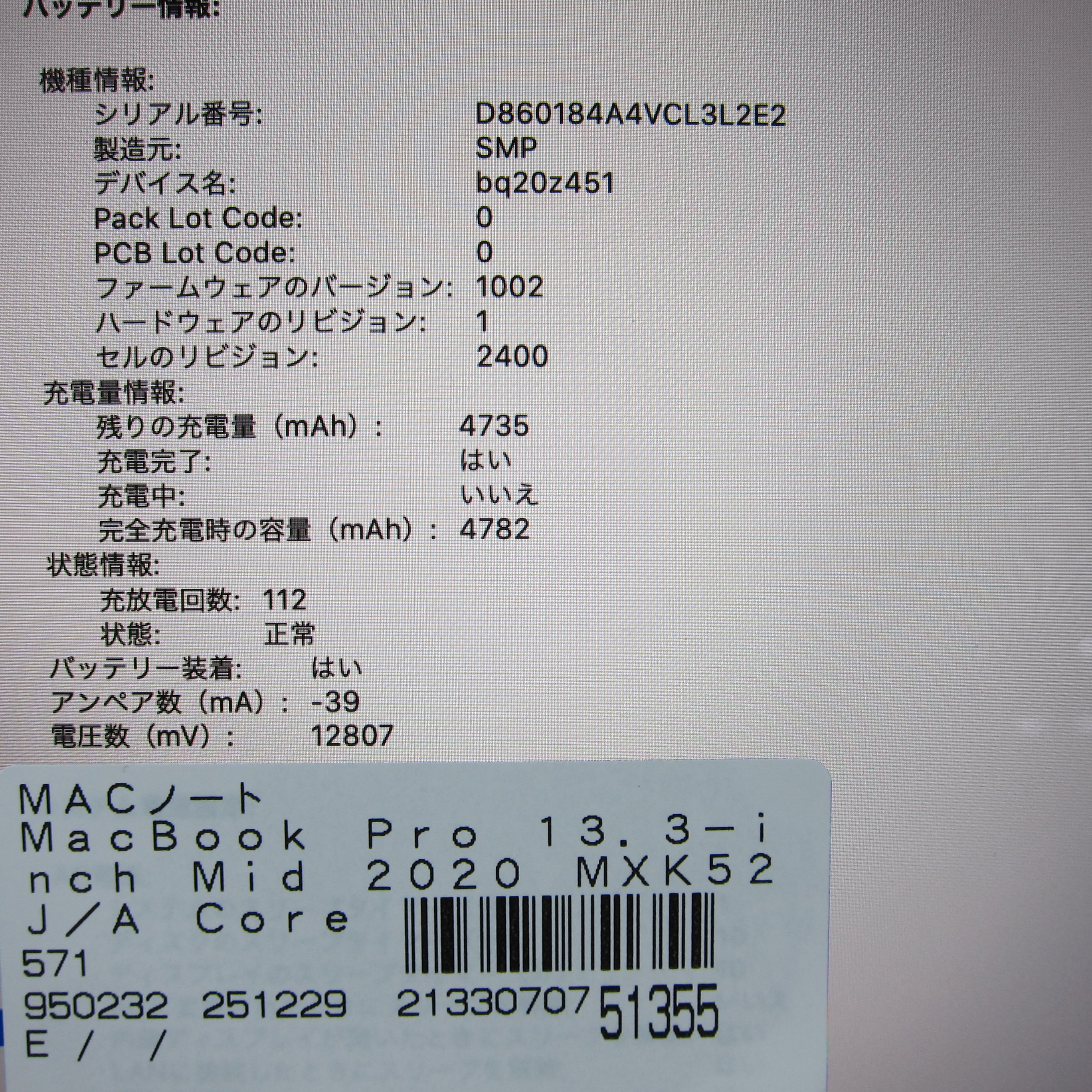 〔中古品〕 MacBook Pro 13.3-inch Mid-2020 MXK52J/A Core_i5 1.4GHz 8GB SSD512GB スペースグレイ 〔10.15 Catalina〕 [グラフィック:Intel Iris Plus Graphics 645(CPU内蔵)/JISキーボード]