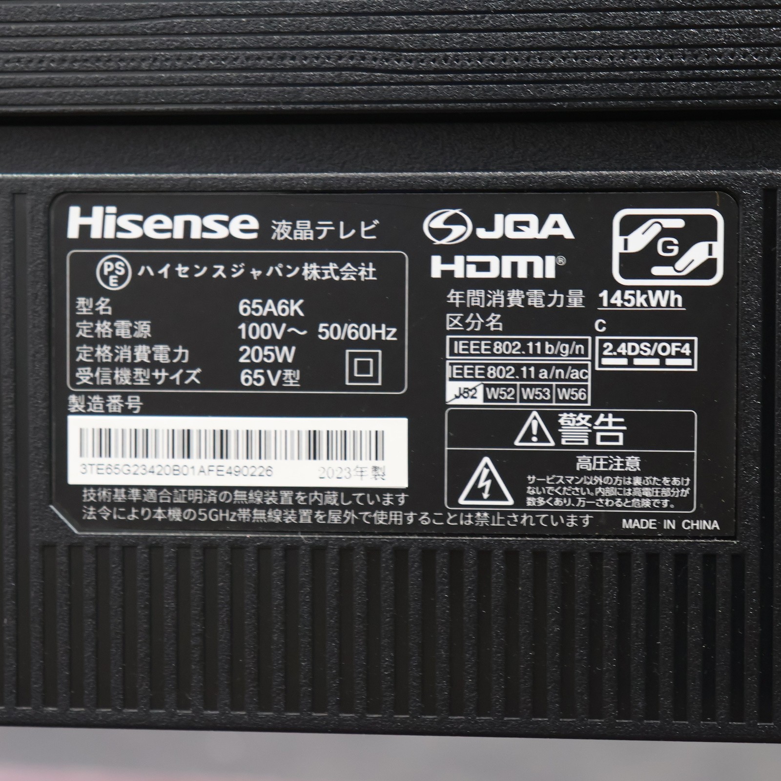 〔展示品〕 液晶テレビ 65A6K [65V型 /Bluetooth対応 /4K対応 /BS・CS 4Kチューナー内蔵 /YouTube対応]