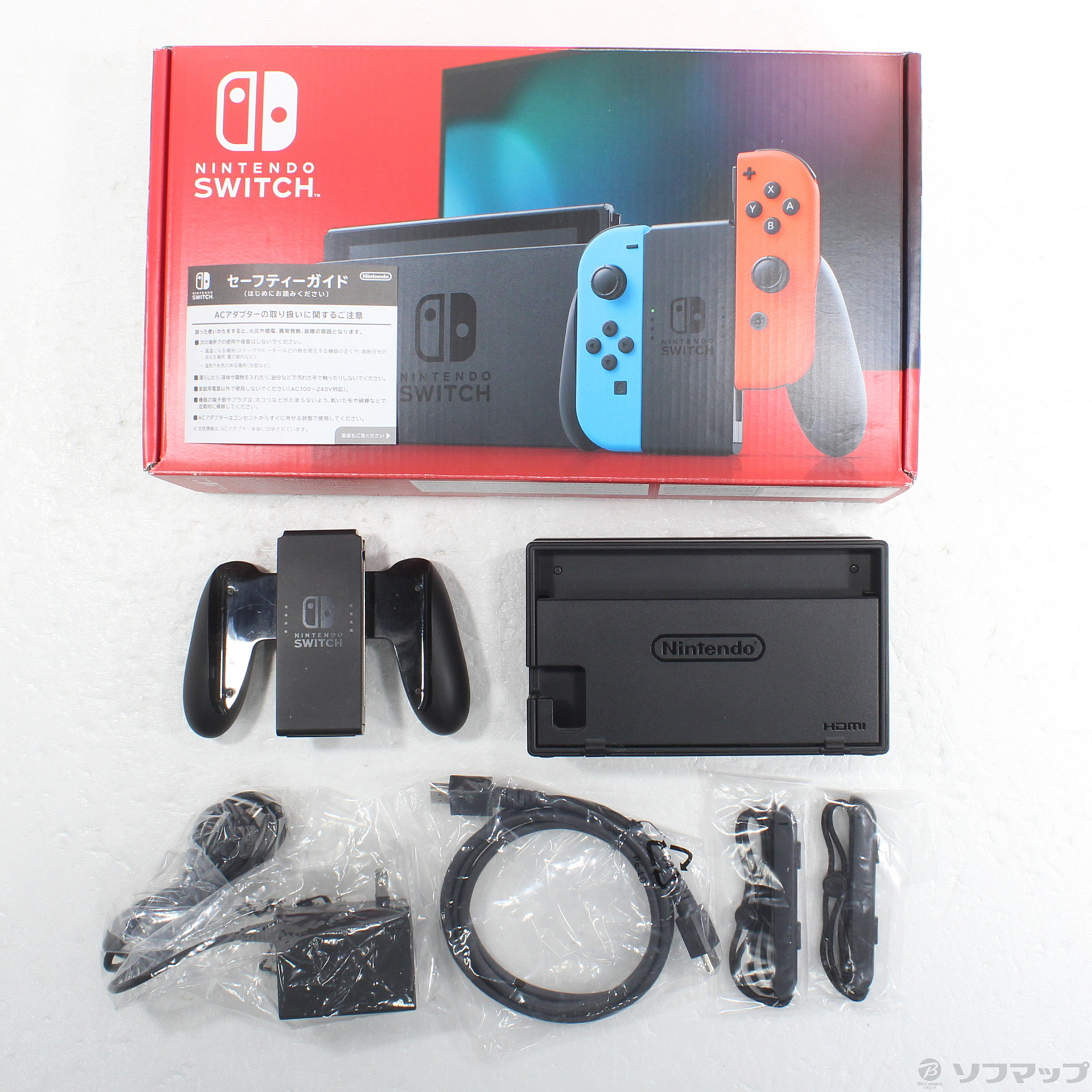 中古商品ランクについて 付属品・商品状態について 〔付属品〕箱、セーフティーガイド、ACアダプター、Joy-Con 右 ネオンレッド、Joy-Conグリップ、Joy-Con 左 ネオンブルー、Nintendo Switchドック、Joy-Conストラップ 左、Joy-Conストラップ 右、背面スタンド、HDMIケーブル(1.5m)