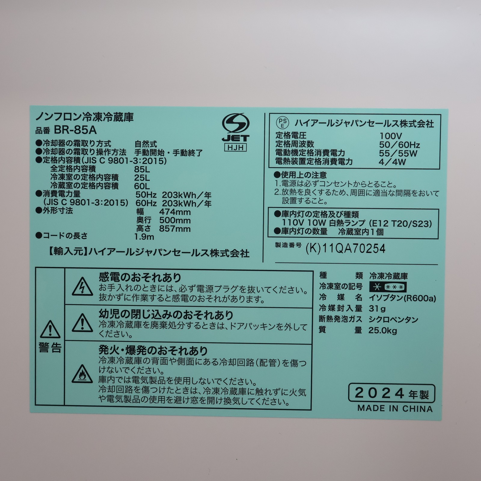 〔展示品〕 冷蔵庫 ブラック BR-85A-K [幅47.4cm /85L /2ドア /右開きタイプ /2024年]