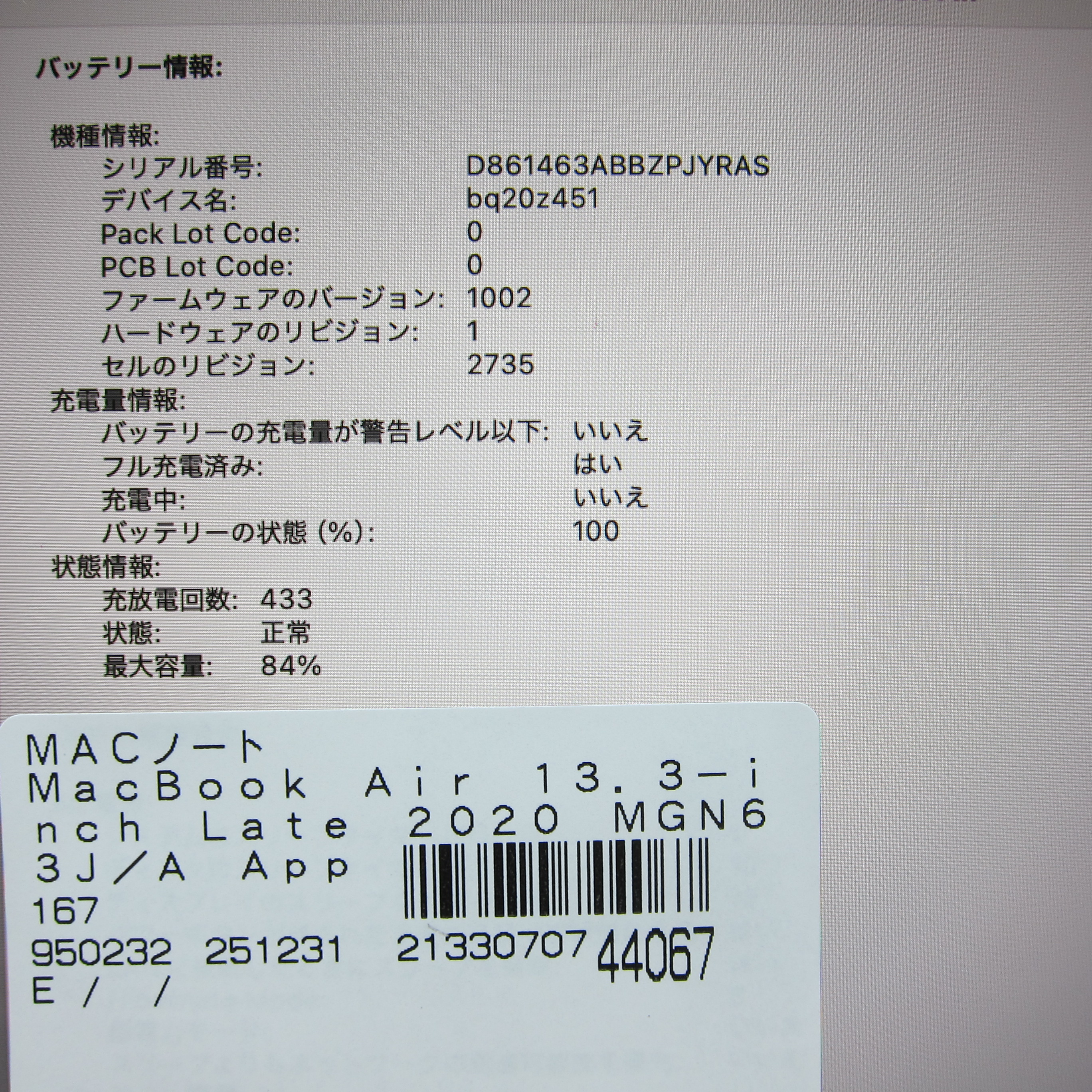 〔中古品〕 MacBook Air 13.3-inch Late-2020 MGN63J/A Apple M1 8コアCPU_7コアGPU 16GB SSD256GB スペースグレイ 〔15.7 Sequoia〕 [グラフィック:オンボード/USキーボード]