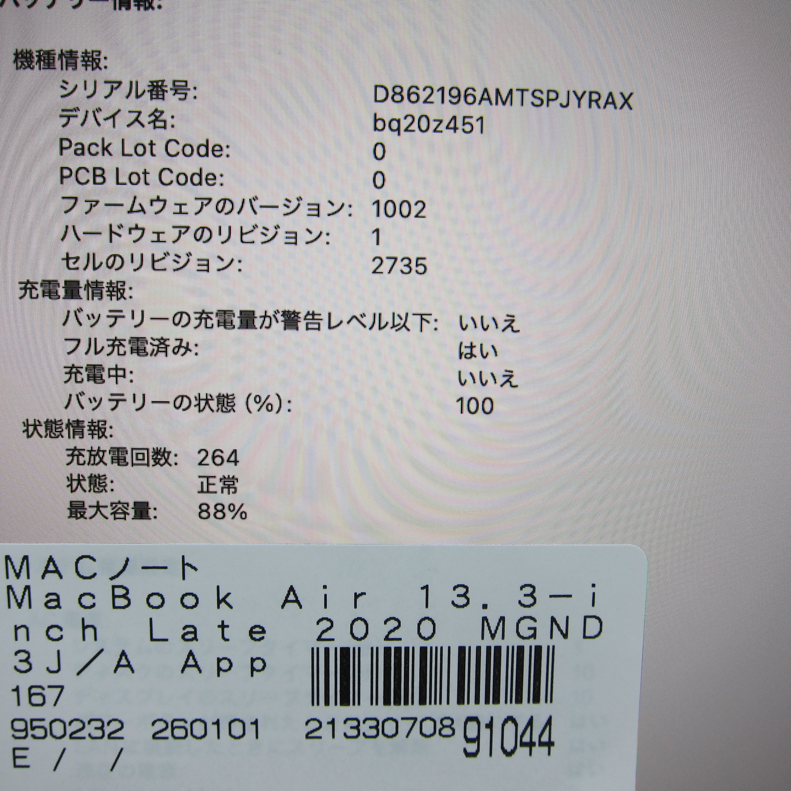 商品名 〔中古品〕 MacBook Air 13.3-inch Late-2020 MGND3J/A Apple M1 8コアCPU_7コアGPU 8GB SSD256GB ゴールド 〔15.3 Sequoia〕 [グラフィック:オンボード/JISキーボード]