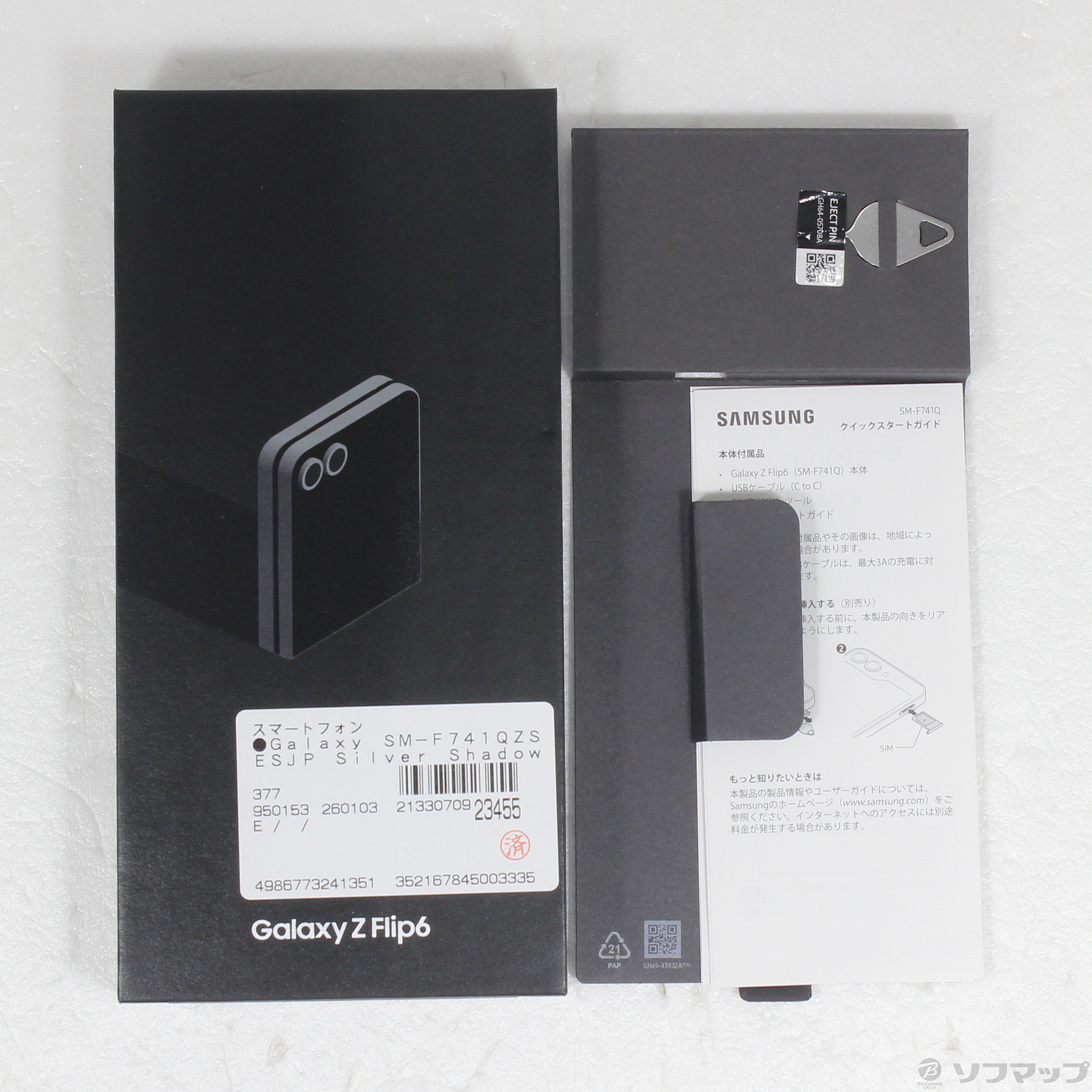 〔中古品〕 Galaxy Z Flip6 256GB シルバーシャドウ SM-F741QZSESJP SIMフリー [6.7インチ/3.4インチ有機EL/Snapdragon 8 Gen 3 Mobile Platform for Galaxy/3.39GHz/3.1GHz/2.9GHz/2.2GHz]