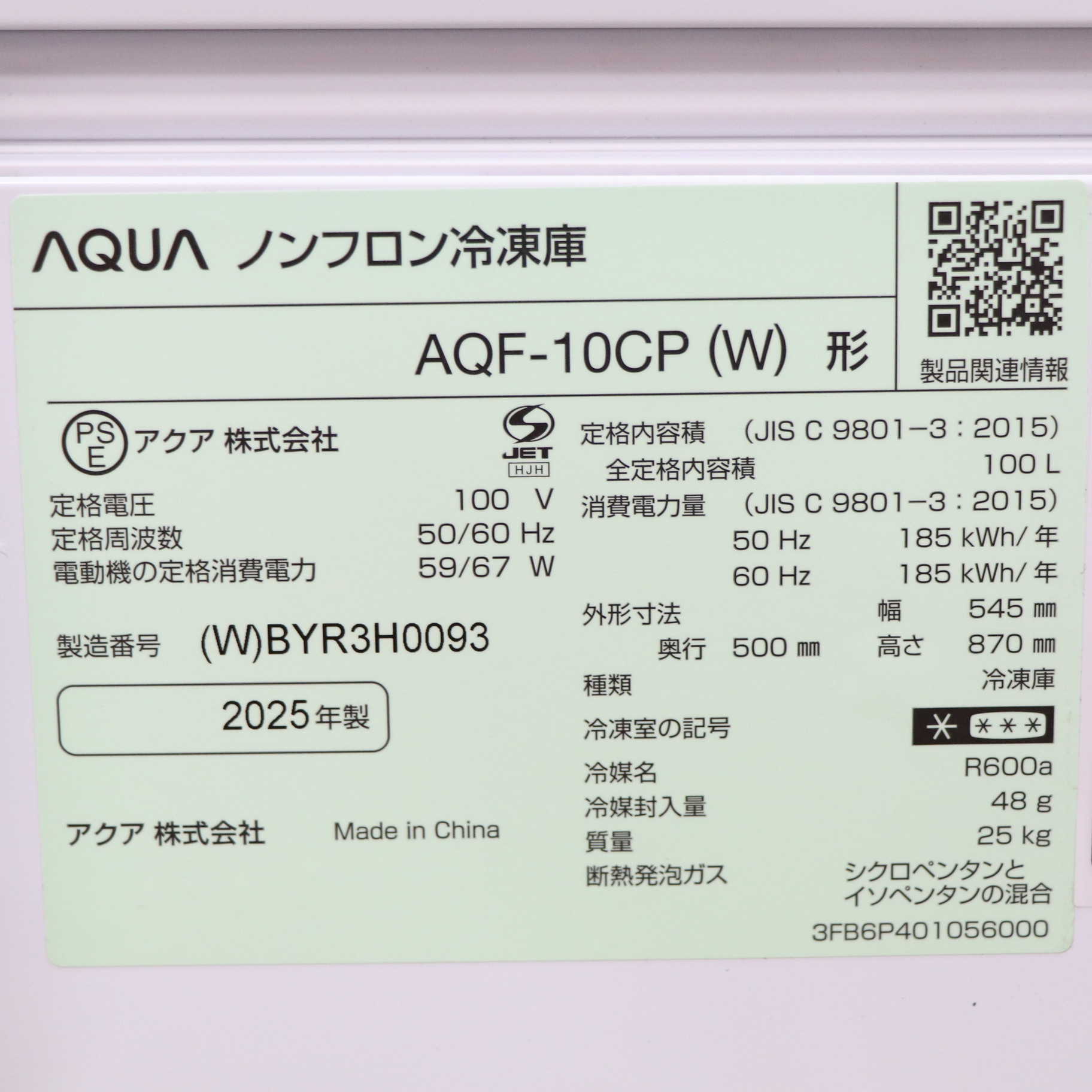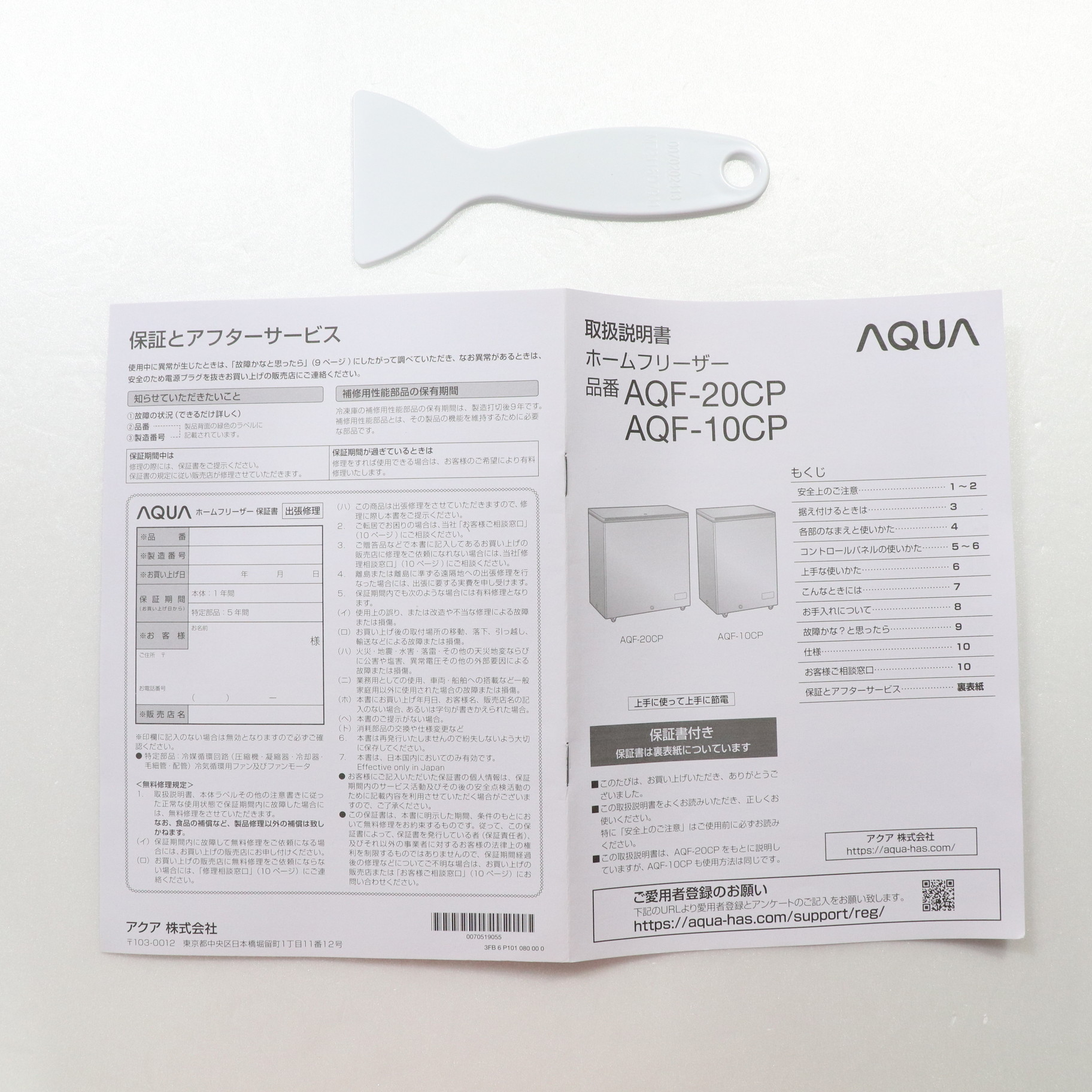〔展示品〕 直冷式チェストフリーザー スノーホワイト AQF-10CP-W [幅54.5cm /100L /1ドア /上開き /2024年]