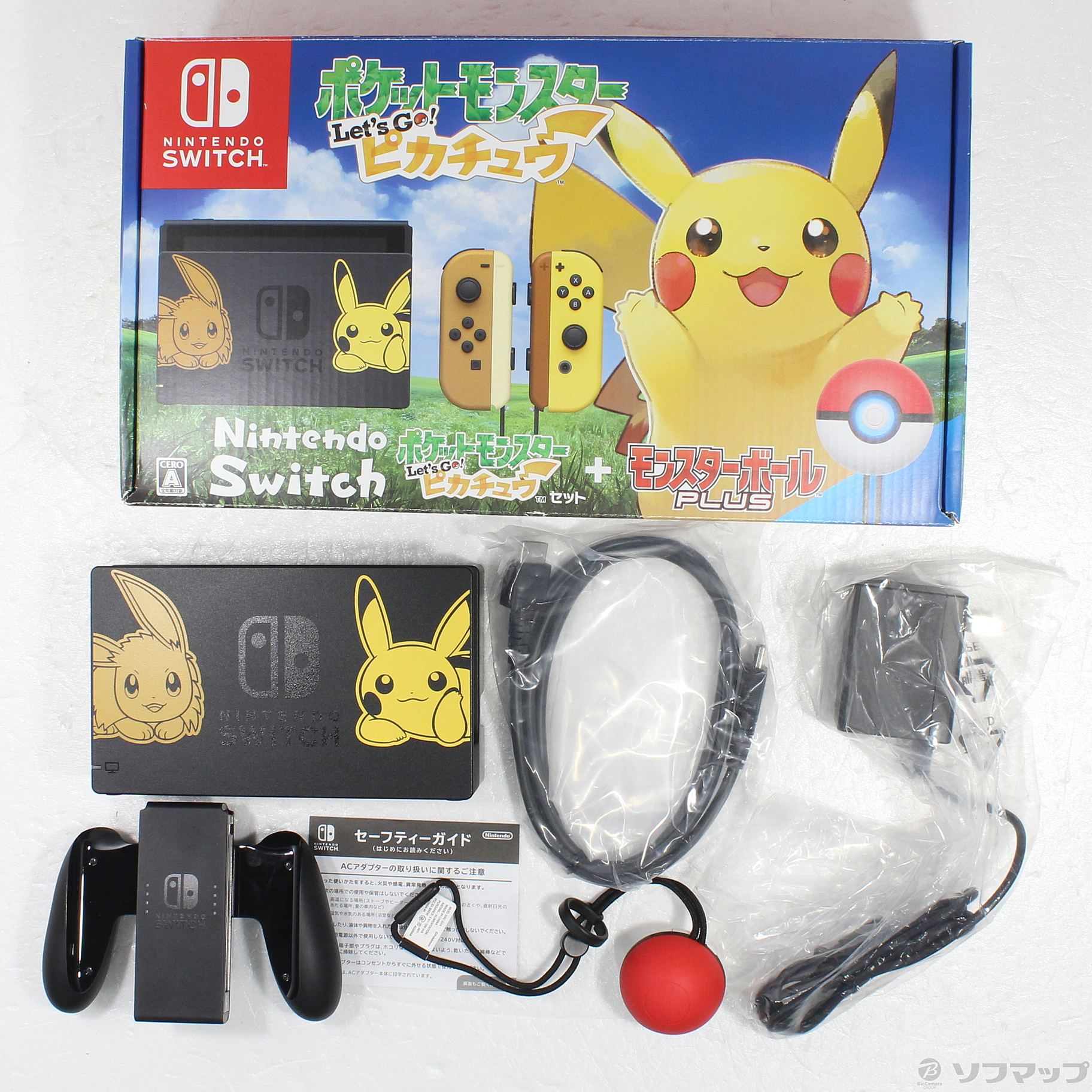 ピカチュウ・イーブイカラーのJoy-ConがついたNintendo Switch本体と『ポケットモンスター Let’s Go! ピカチュウ』ダウンロード版、そして「モンスターボール Plus」が一緒になった特別なセット