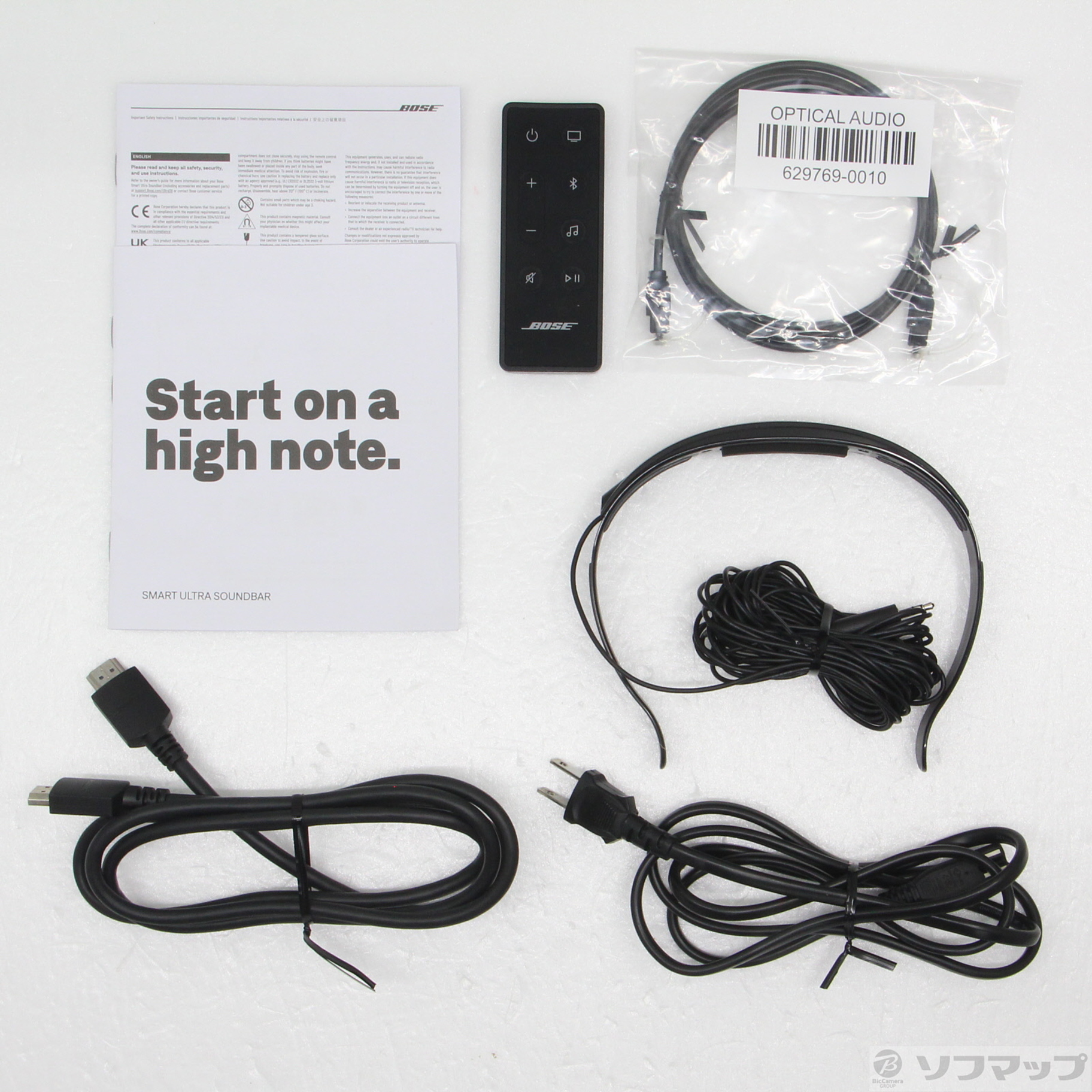 Bose Smart Ultra Soundbarはケーブル1本でテレビに接続できます。HDMI eARC接続、光デジタル音声接続のどちらに対応しています (両方のケーブル付属)。サウンドバーを電源に接続し、Bose Musicアプリをお使いのモバイル機器にダウンロードしたら、セットアップは完了です。