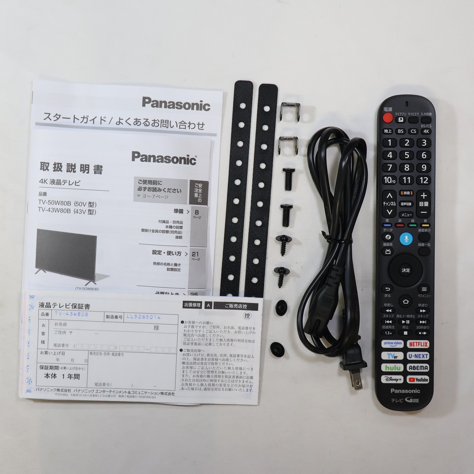 ![Panasonic(パナソニック) 液晶テレビ VIERA(ビエラ) TV-43W80B [43V型 /Bluetooth対応 /4K対応 /BS・CS 4Kチューナー内蔵 /YouTube対応]](https://image.sofmap.com/images/product/large/4549980896495.jpg)
