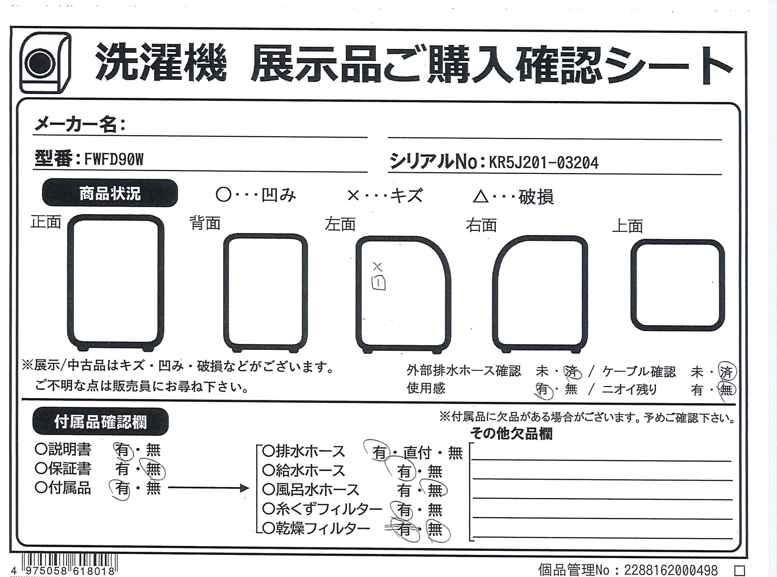 中古商品ランクについて 付属品・商品状態について 〔付属品〕取扱説明書、給水ホース、排水ホース、キャップ・ネジ×4