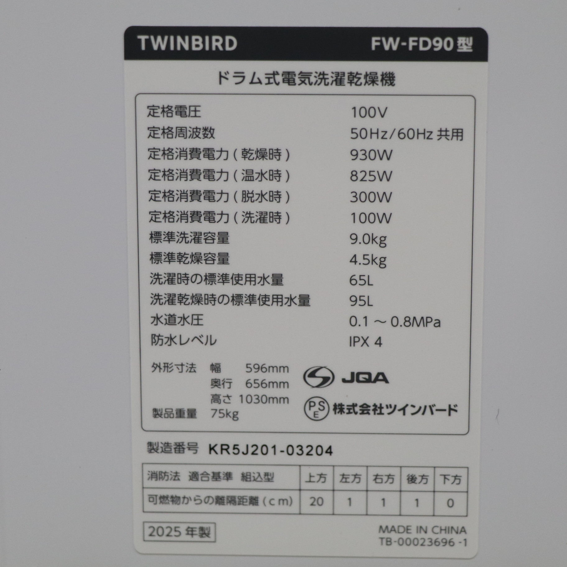 ![ツインバード ドラム式電気洗濯乾燥機 ツインバード ホワイト FW-FD90W [洗濯9.0kg /乾燥4.5kg /ヒーター乾燥(水冷・除湿タイプ) /左開き]](https://image.sofmap.com/images/product/large/4975058618018.jpg)