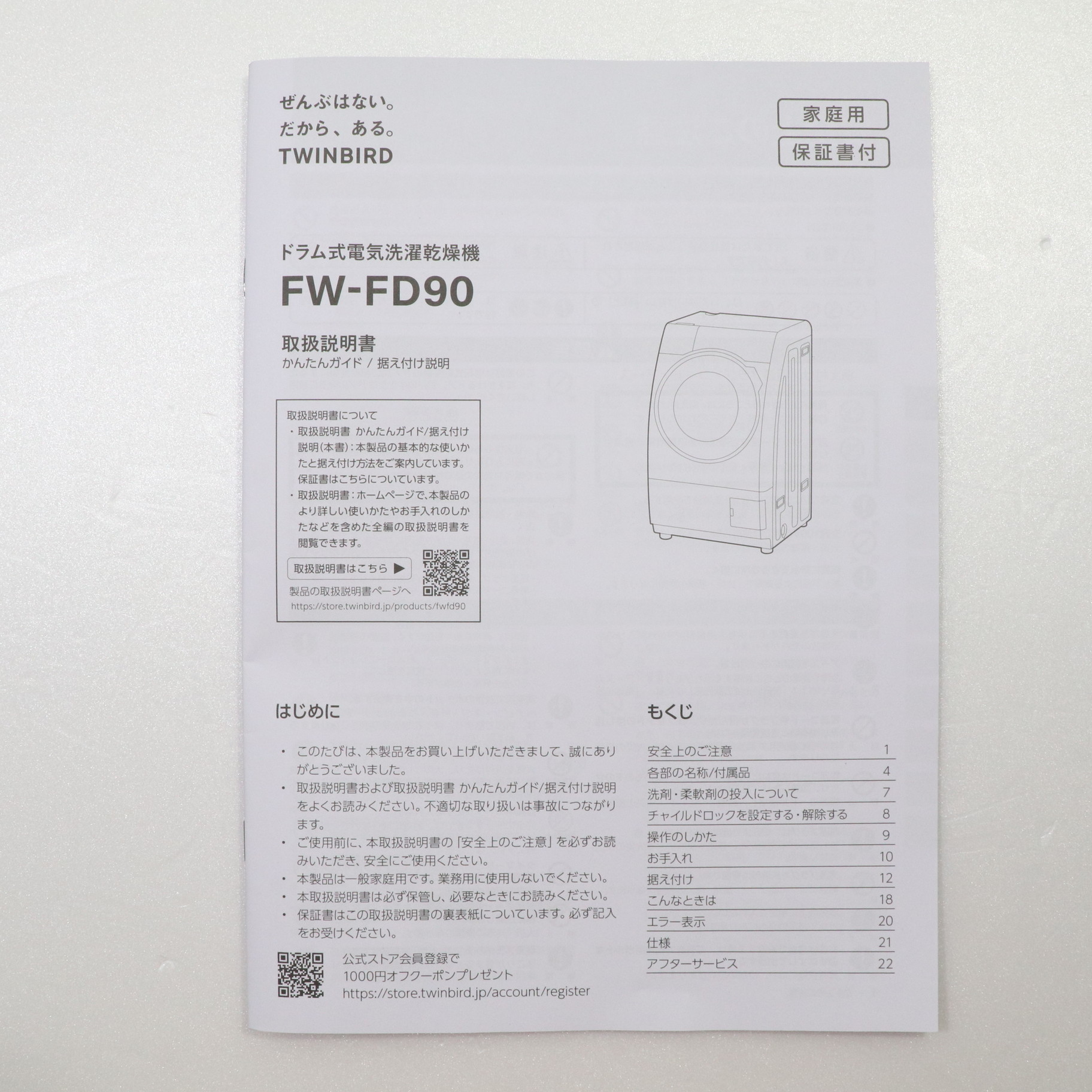 〔中古品〕 ドラム式電気洗濯乾燥機 ツインバード ホワイト FW-FD90W [洗濯9.0kg /乾燥4.5kg /ヒーター乾燥(水冷・除湿タイプ) /左開き]