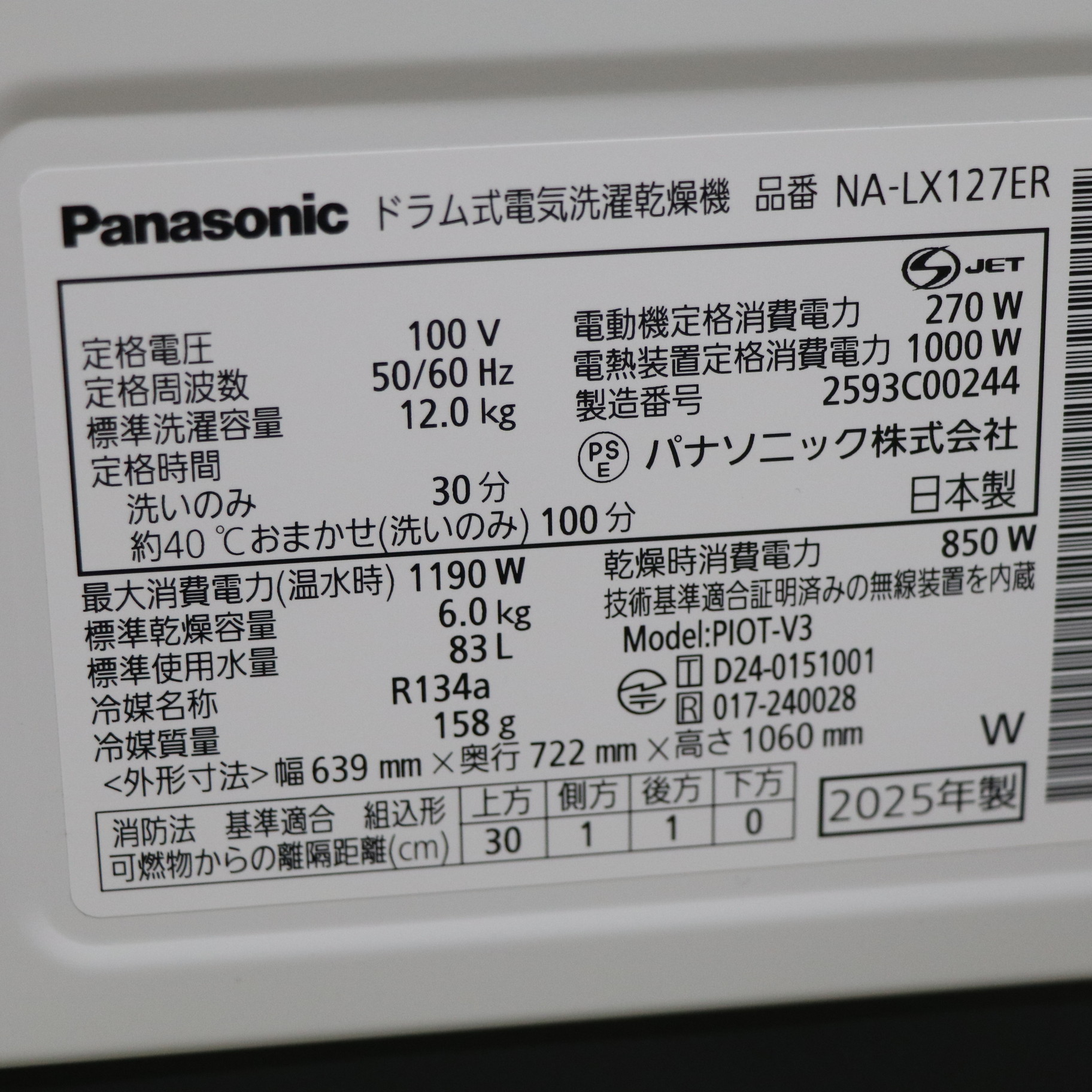 ※1 洗濯〜乾燥おまかせコース・定格洗濯乾燥6kg時。パナソニック2024年度モデルNA-LX127D(約890Wh)とNA-LX127E(約800Wh)の消費電力量比較。衣類の素材・入れ方・洗濯時の状況により、運転時間・消費電力量は前後します。