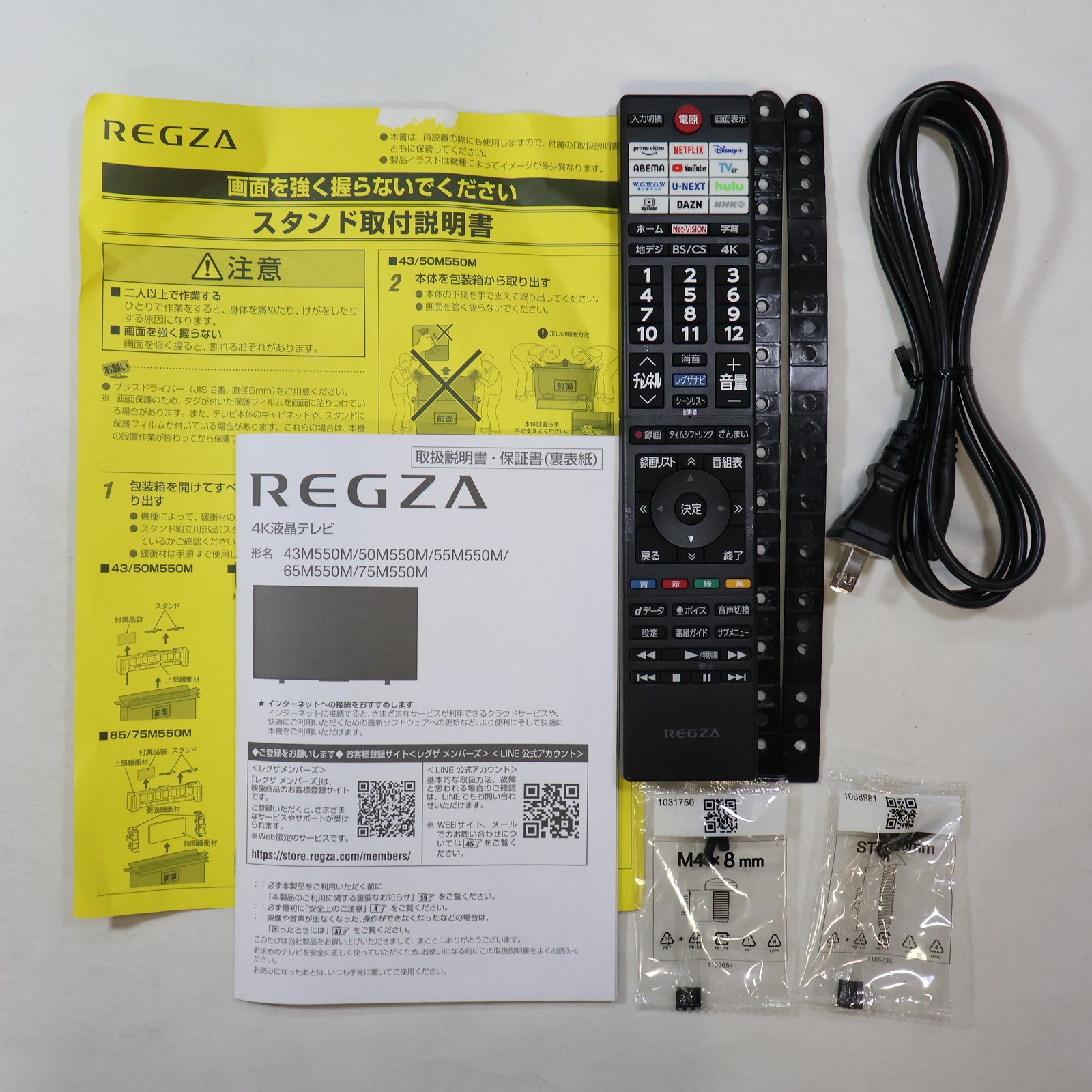 中古商品ランクについて 付属品・商品状態について 〔付属品〕説明書、スタンド、スタンドM5ネジ×4、リモコン、電源コード、転倒防止バンド×2、転倒防止ネジ(長)×2、転倒防止ネジ(短)×2