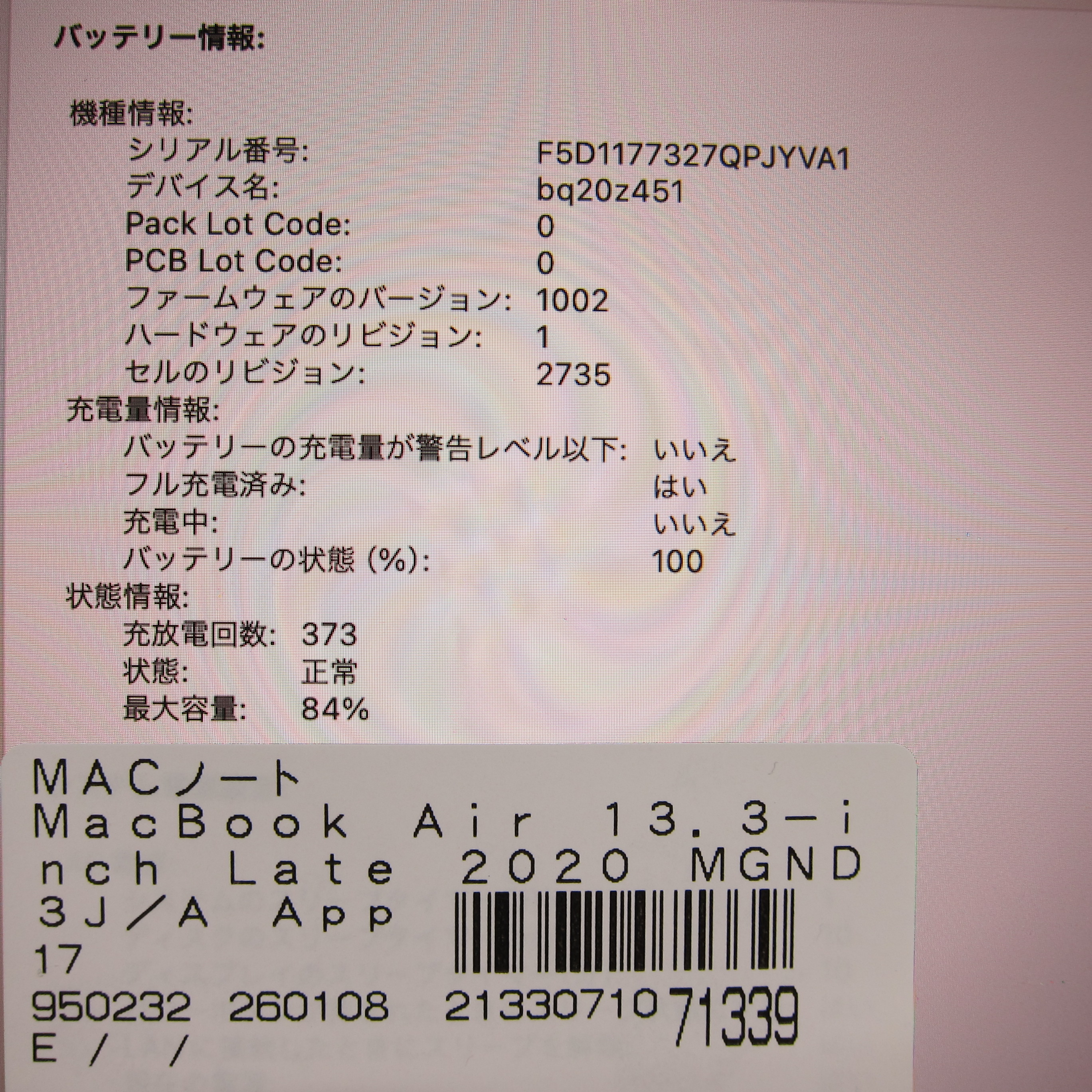 〔中古品〕 MacBook Air 13.3-inch Late-2020 MGND3J/A Apple M1 8コアCPU_7コアGPU 16GB SSD256GB ゴールド 〔14.7 Sonoma〕 [グラフィック:オンボード/JISキーボード]