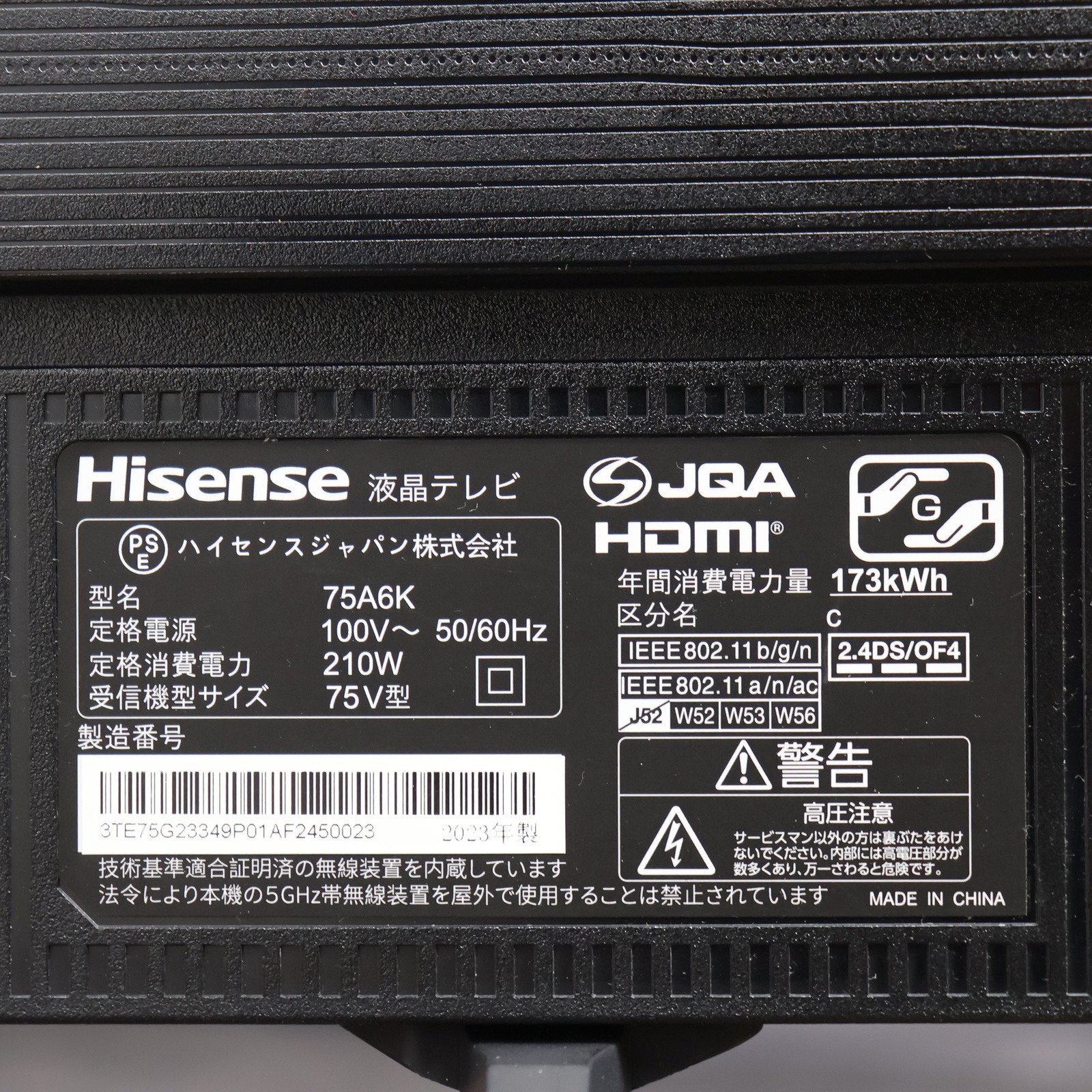 〔展示品〕 液晶テレビ 75A6K [75V型 /Bluetooth対応 /4K対応 /BS・CS 4Kチューナー内蔵 /YouTube対応]